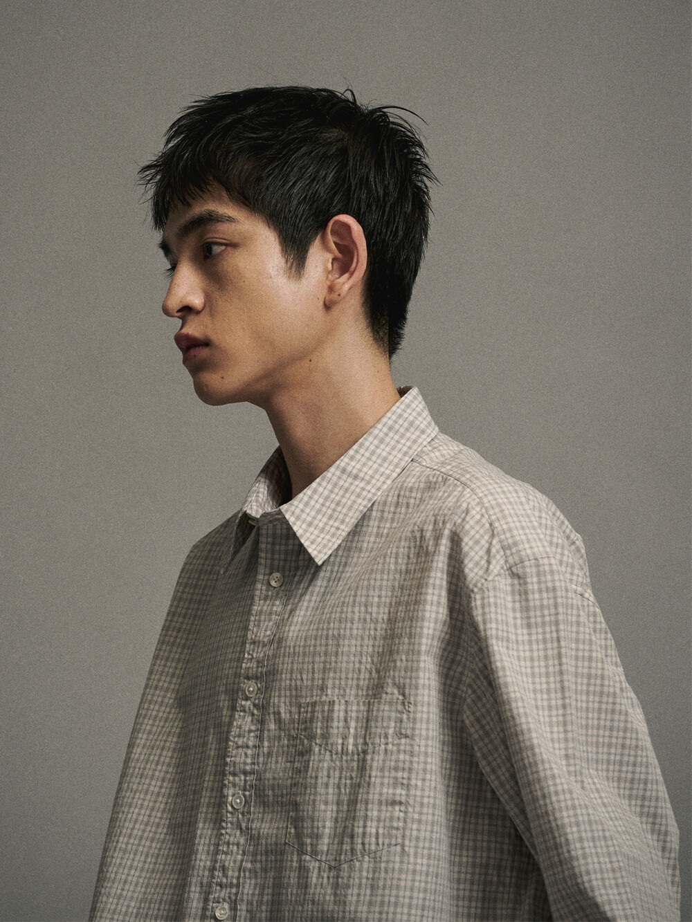 오가닉 코튼으로 만든 미니 체크패턴의 컴포트 셔츠입니다. 앞판에 플라켓과 가슴포켓이 달려있으며, 뒷판 요크를 사선으로 재단하였습니다. 적당히 여유로운 실루엣의 컴포트핏 셔츠로 캐주얼 팬츠부터 셋업까지 다양한 아이템과 매치할 수 있습니다.