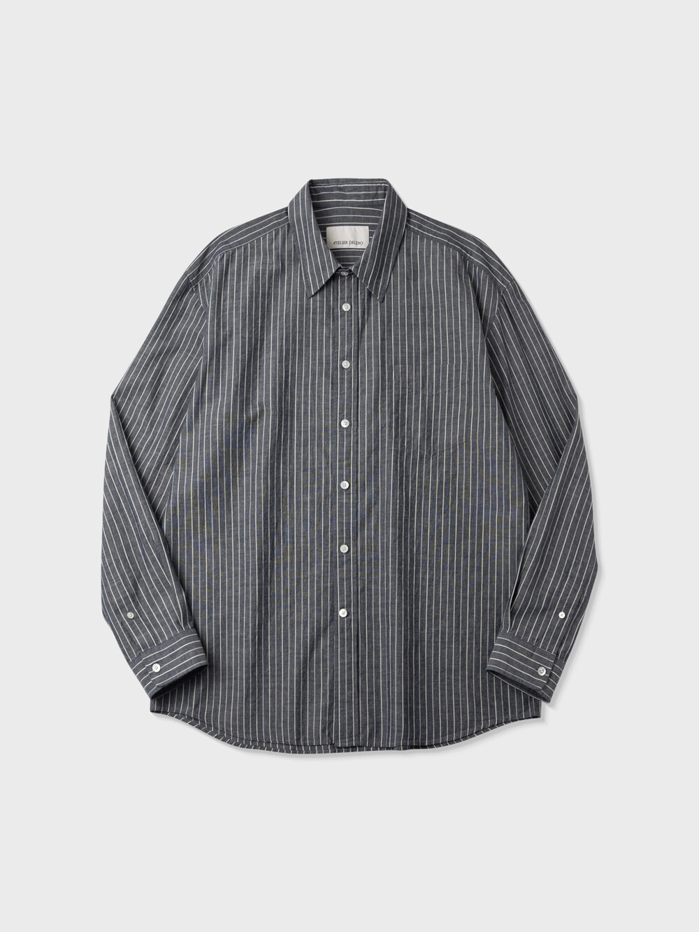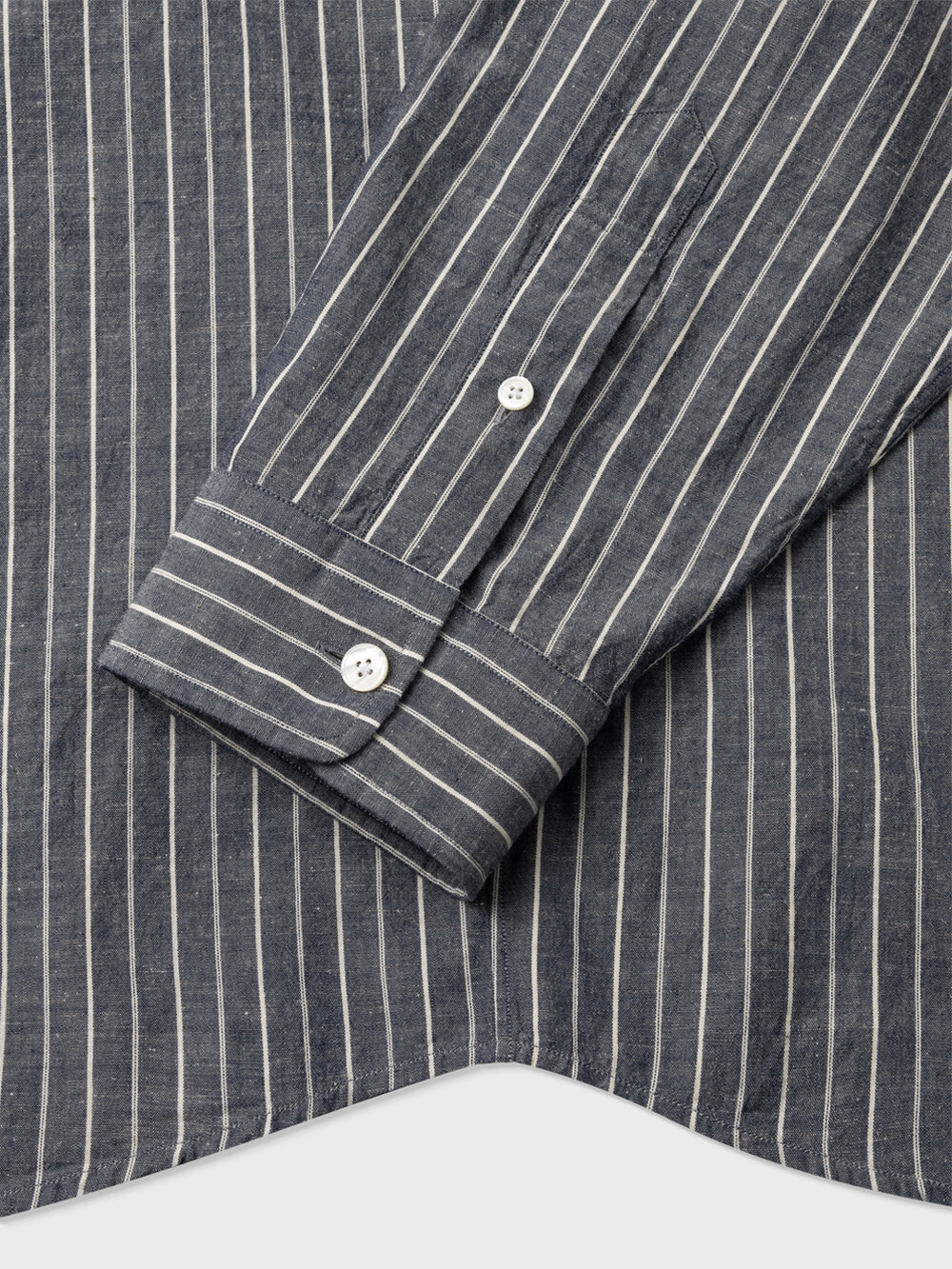 코튼 린넨 스트라이프 컴포트 셔츠 (NAVY)