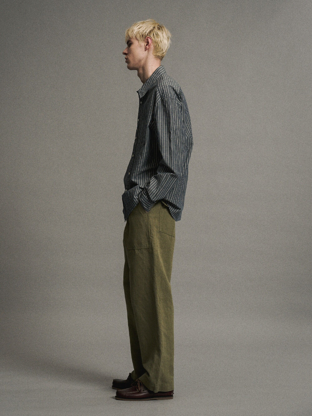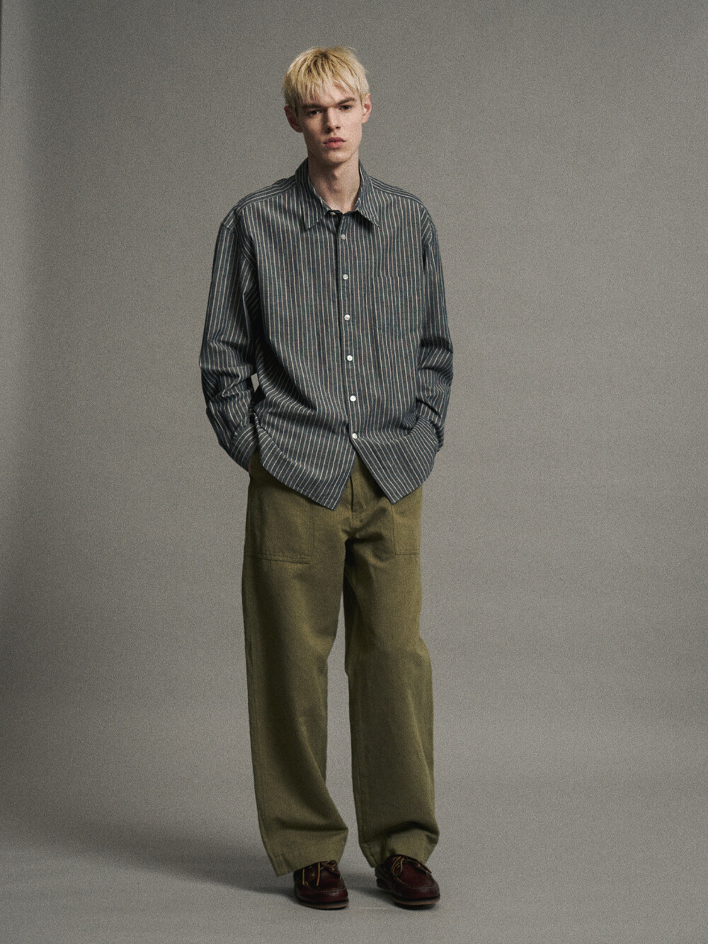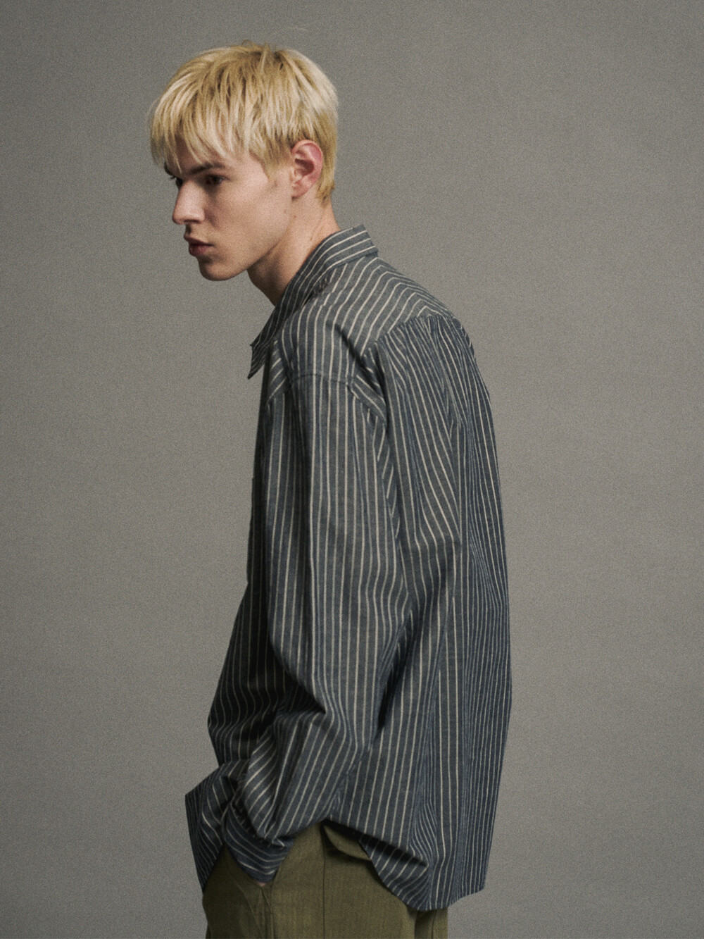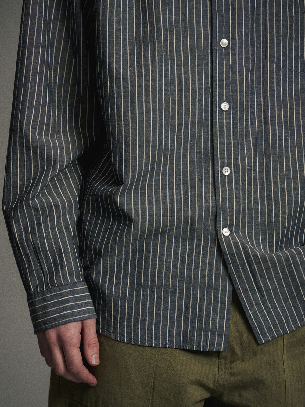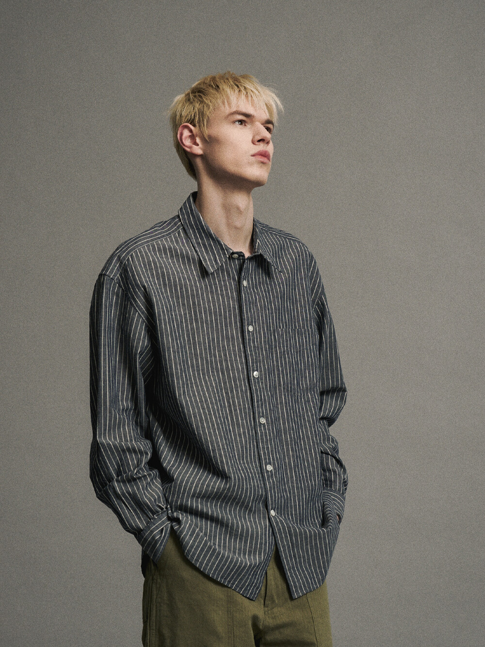 코튼 린넨 혼방 원단으로 만든 컴포트 셔츠입니다. 미묘하게 다른 2개의 스트라이프 패턴이 이상적인 간격으로 배열된 셔츠입니다. 앞판에 플라켓과 가슴포켓이 달려있으며, 뒷판 요크를 사선으로 재단하였습니다. 적당히 여유로운 실루엣의 컴포트핏 셔츠로 캐주얼 팬츠부터 셋업까지 다양한 아이템과 매치할 수 있습니다.