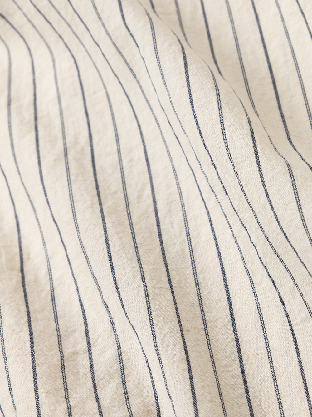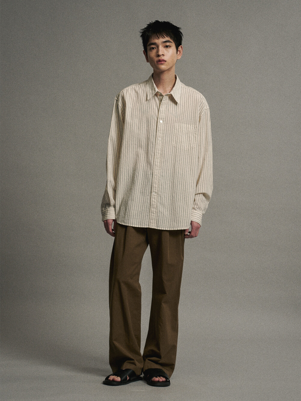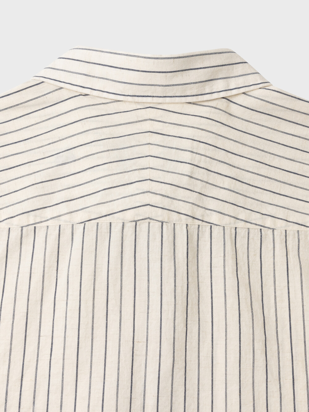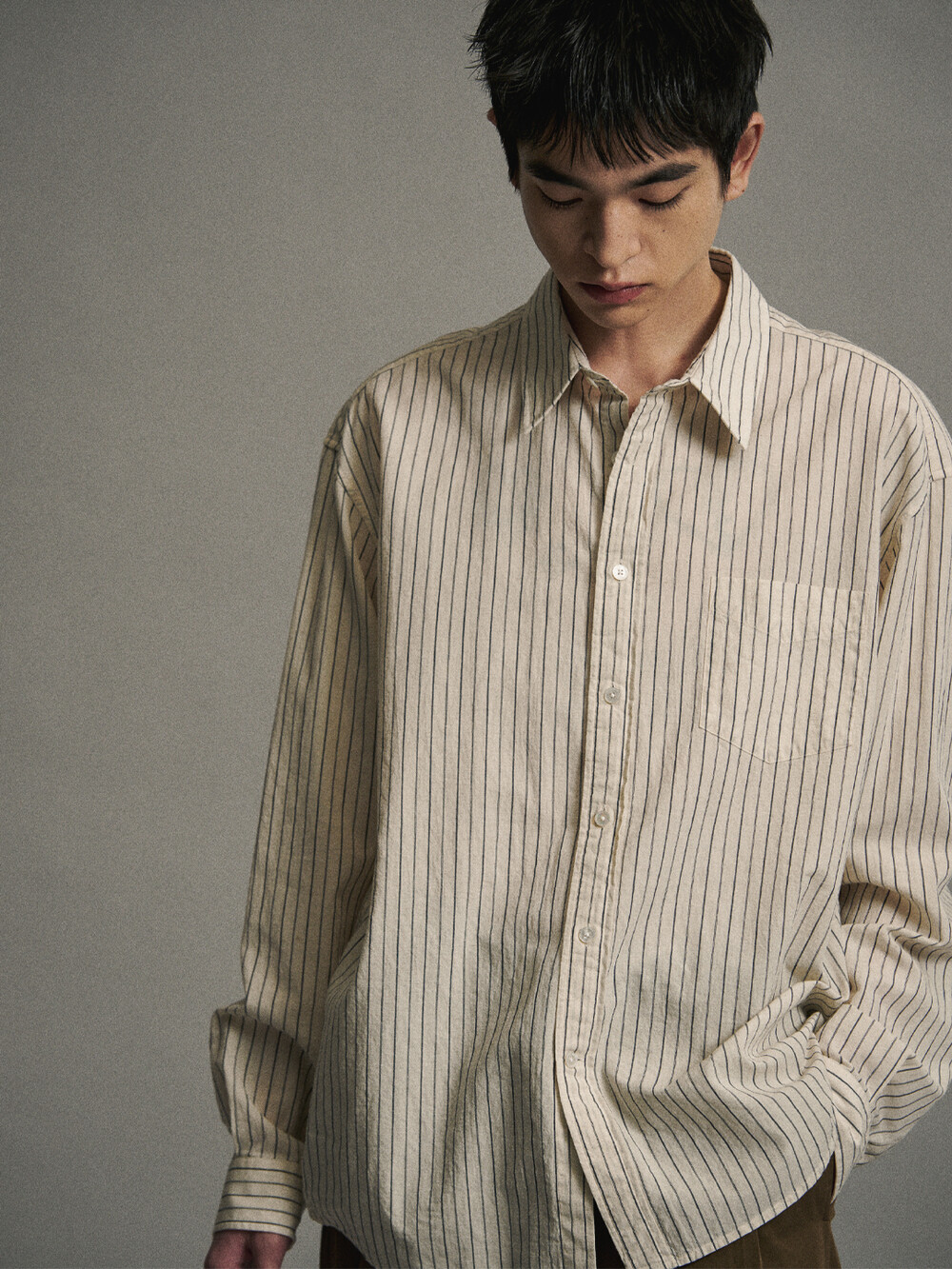 코튼 린넨 혼방 원단으로 만든 컴포트 셔츠입니다. 미묘하게 다른 2개의 스트라이프 패턴이 이상적인 간격으로 배열된 셔츠입니다. 앞판에 플라켓과 가슴포켓이 달려있으며, 뒷판 요크를 사선으로 재단하였습니다. 적당히 여유로운 실루엣의 컴포트핏 셔츠로 캐주얼 팬츠부터 셋업까지 다양한 아이템과 매치할 수 있습니다.