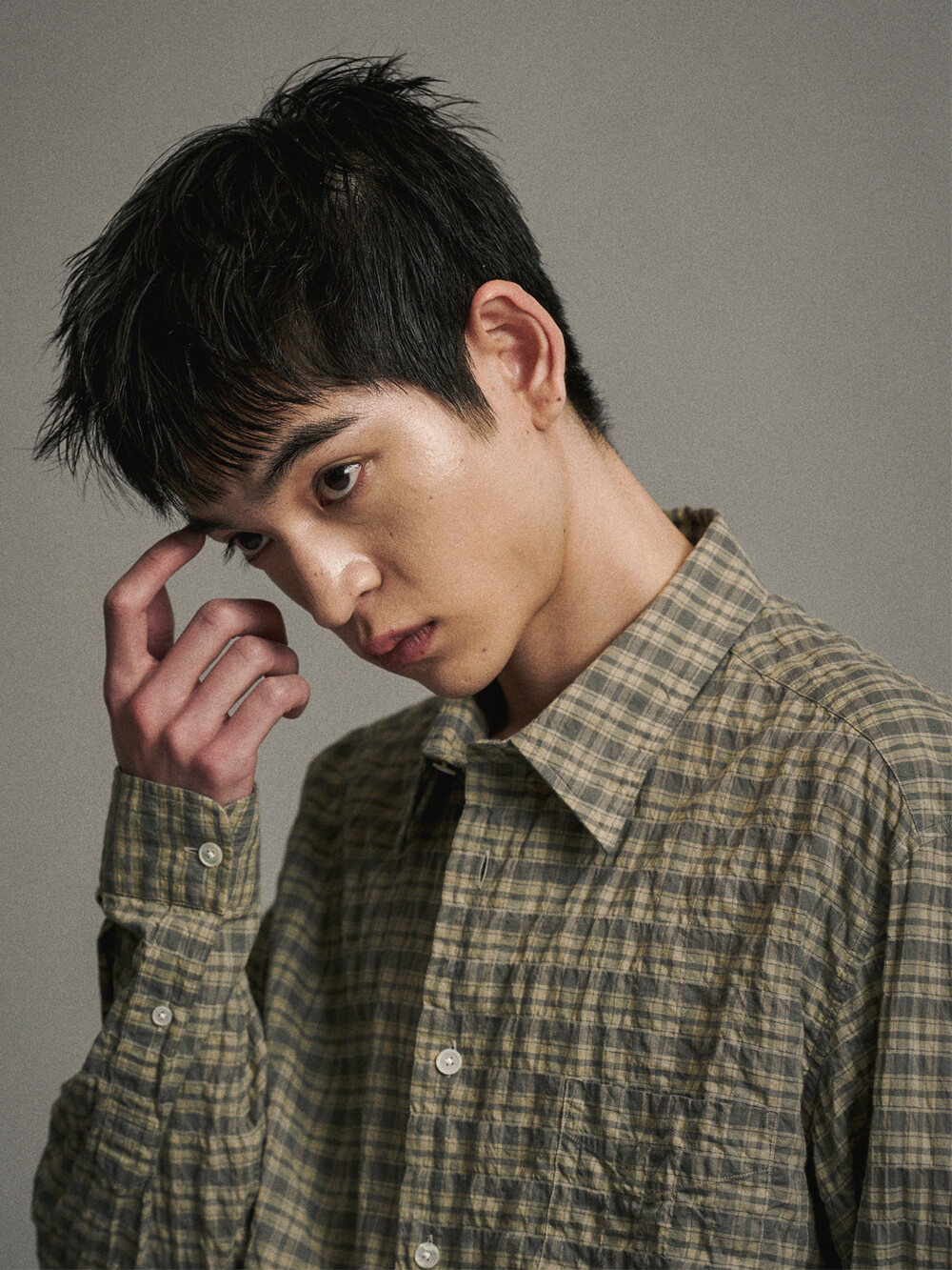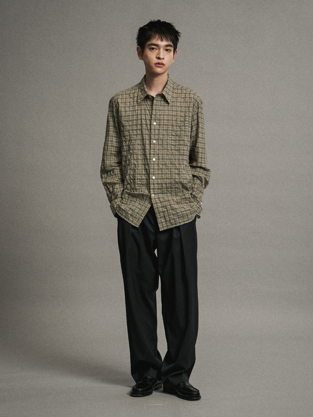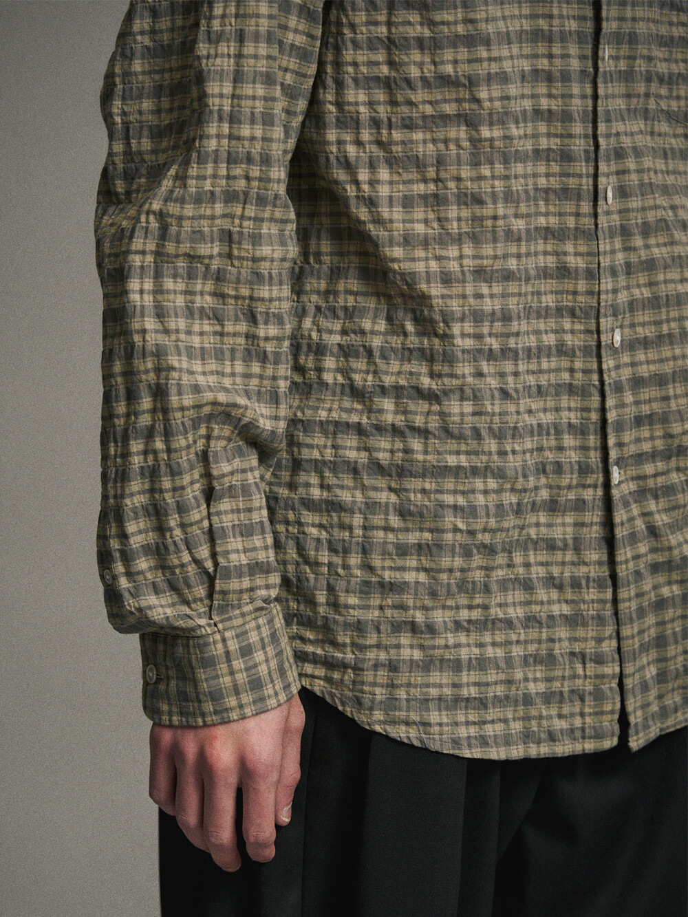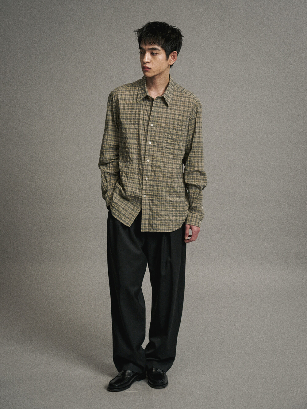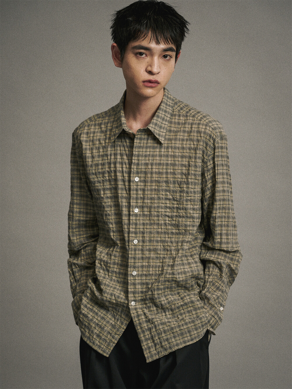 코튼 셔링 체크 컴포트 셔츠 (OLIVE)