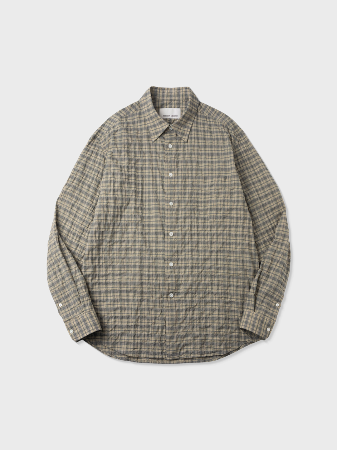 일본산 셔링 체크 원단을 사용하였습니다. 코튼 99%에 1%의 폴리우레탄 실을 섞어 원단에 자연스러운 주름과 텐션이 생기도록 한 원단입니다. 얇으면서도 탄력이 있는 원단으로 여름철 구김 걱정없이 캐주얼한 룩을 연출하기에 좋습니다. 아틀리에 델디오는 특유의 촉감과 색감을 위해 프리미엄 수입원단만을 고집합니다.