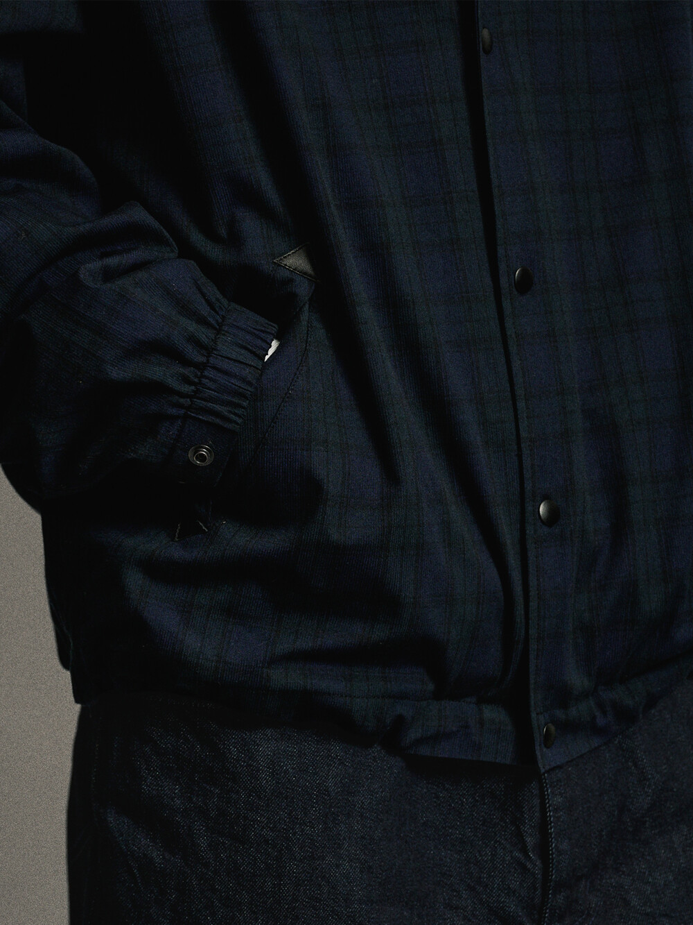 아우터 전문 공방에서 만들었습니다. YKK사의 스냅버튼과 스트링 스톱퍼를 사용하였습니다.