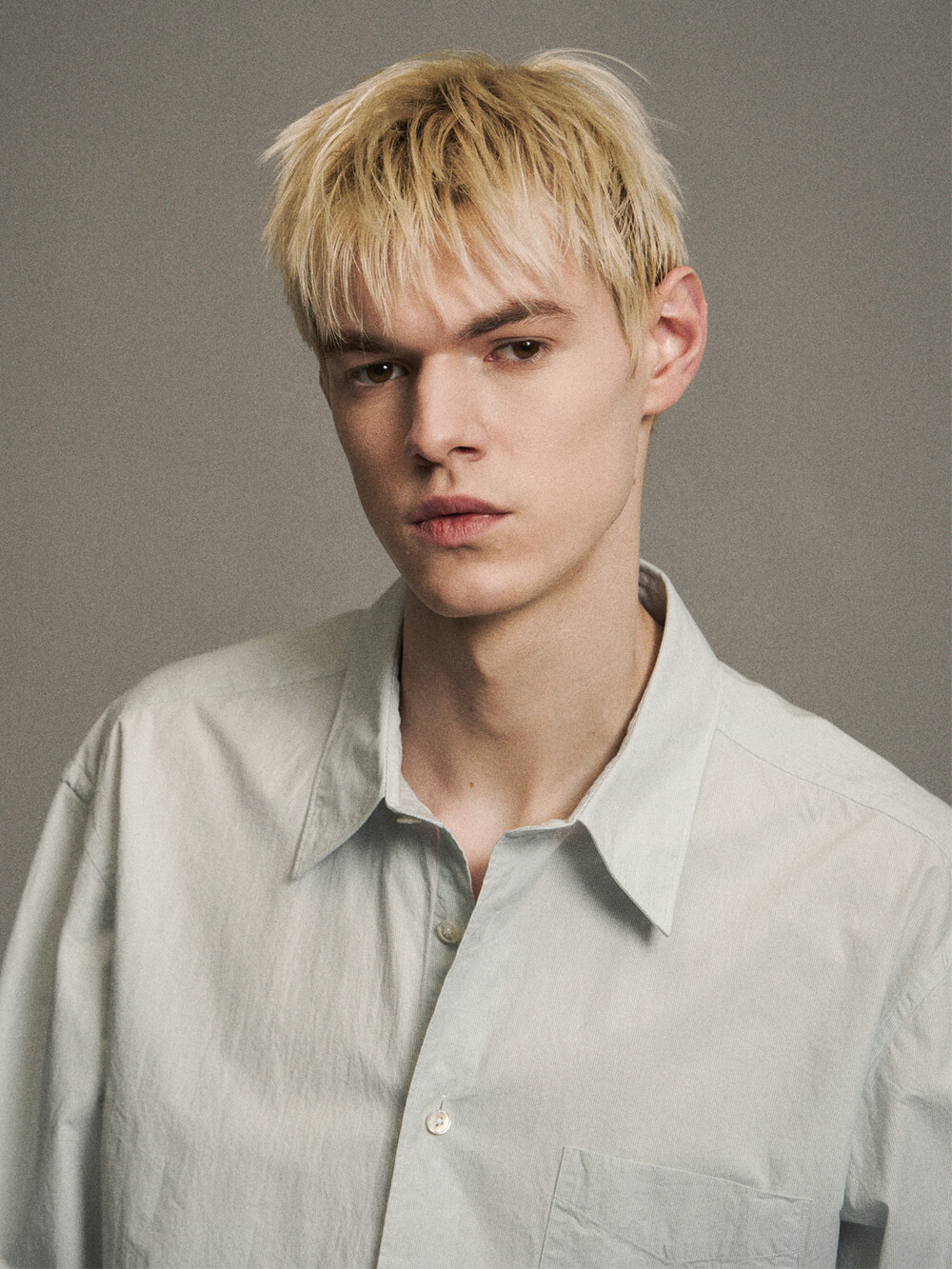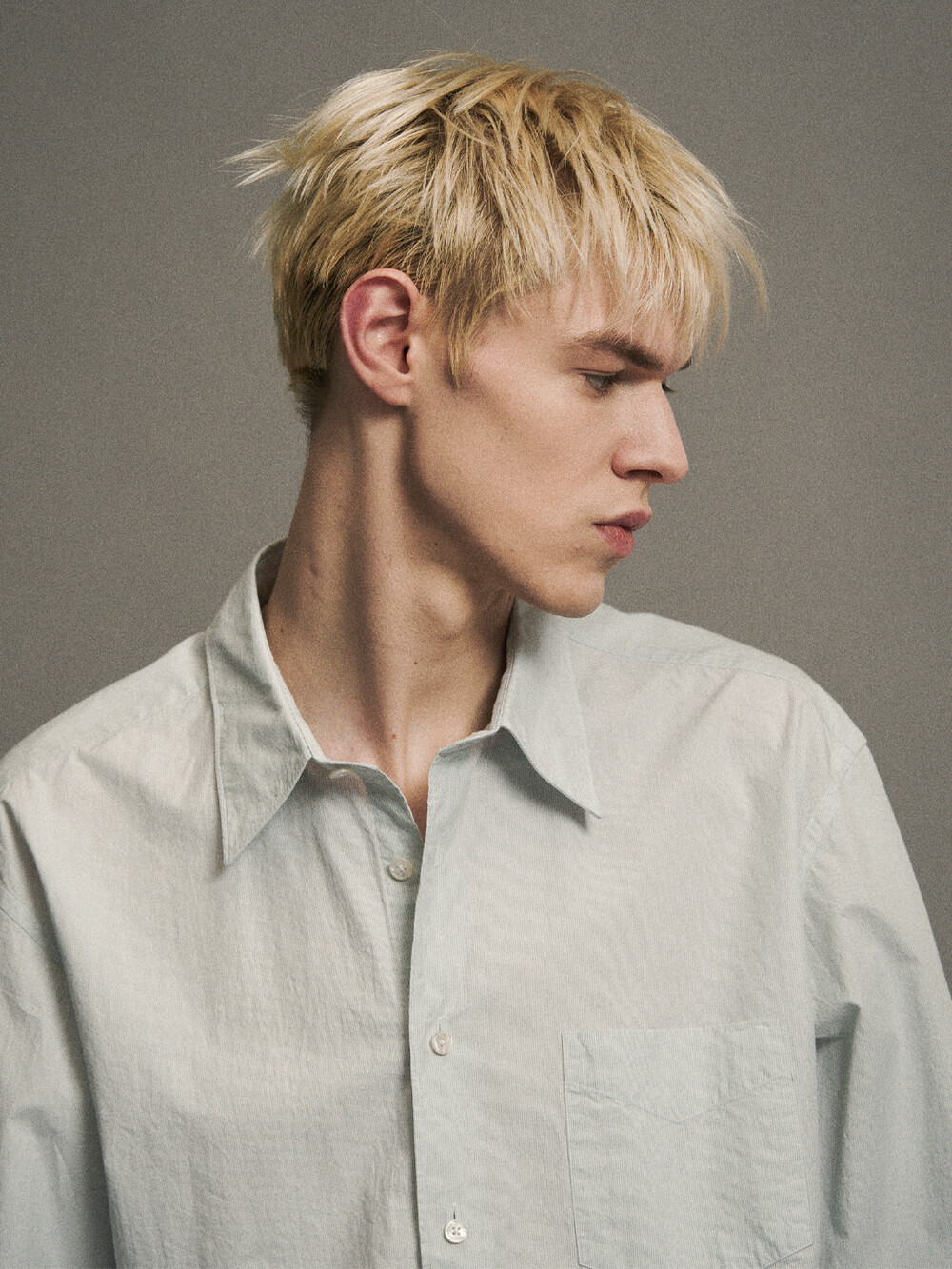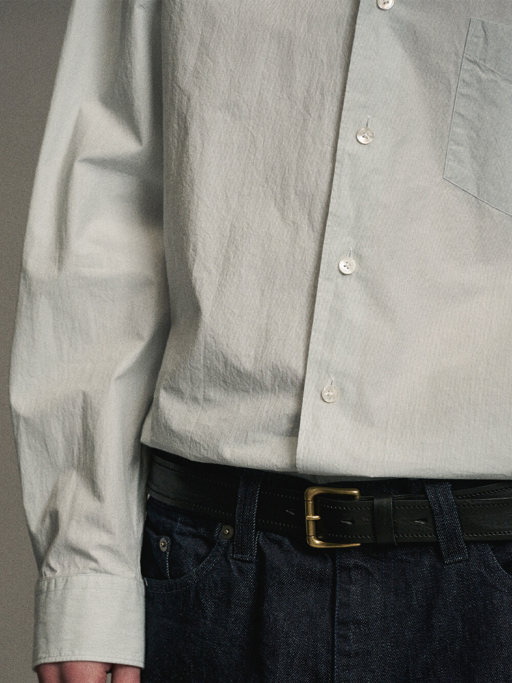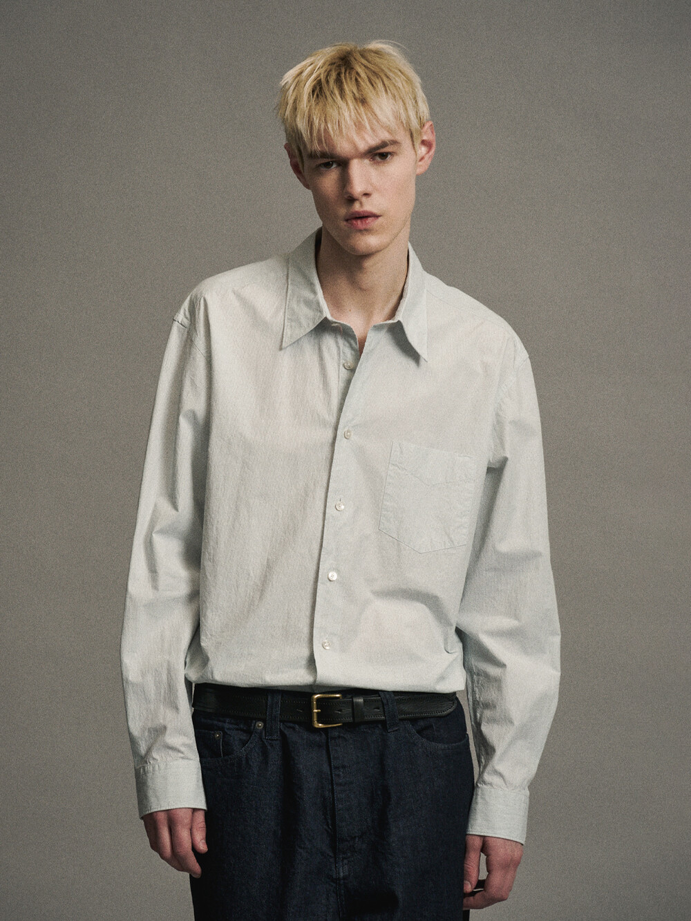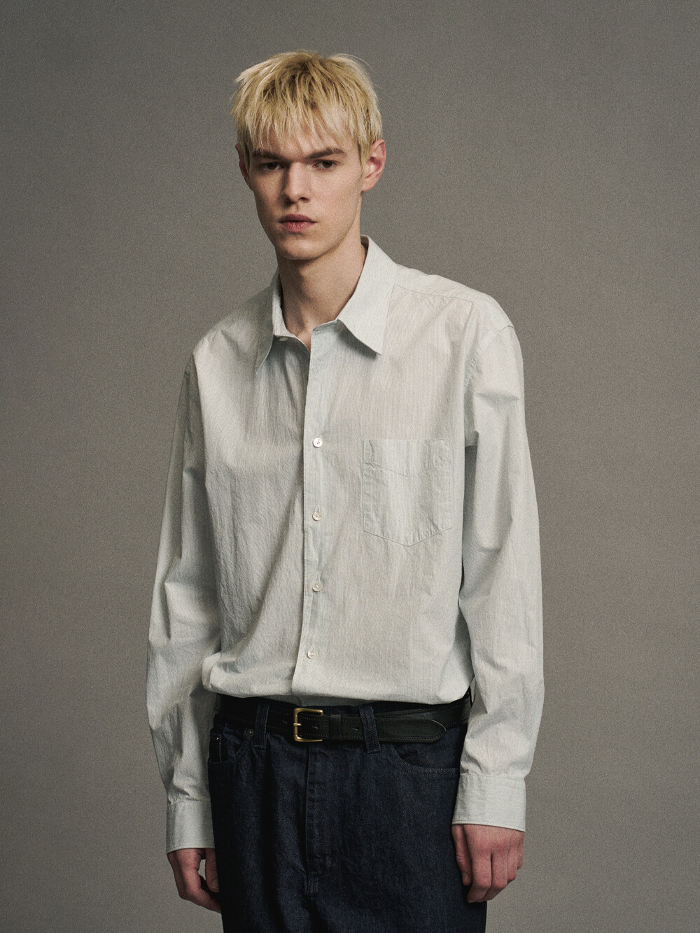 헤어라인 스트라이프 패턴의 오가닉 코튼 원단으로 만든 테이퍼드 셔츠입니다. 멀리서 보면 단색으로 보이는 미세한 간격의 스트라이프 원단입니다. 여유로운 실루엣을 살리면서도 허리라인을 조정하여 자연스럽게 넣어입을 수 있도록 만들었습니다. 미니멀하고 프로패셔널한 룩을 위하여 앞판 플라켓과 뒷판 주름을 생략하고 가슴 포켓을 추가하여 실용성을 높였습니다. 캐주얼함과 포멀함을 모두 만족시키는 셔츠입니다. 타이와 매치하기에도 좋은 디자인의 셔츠로 캐주얼 룩부터 셋업 수트까지 다양한 코디가 가능합니다.