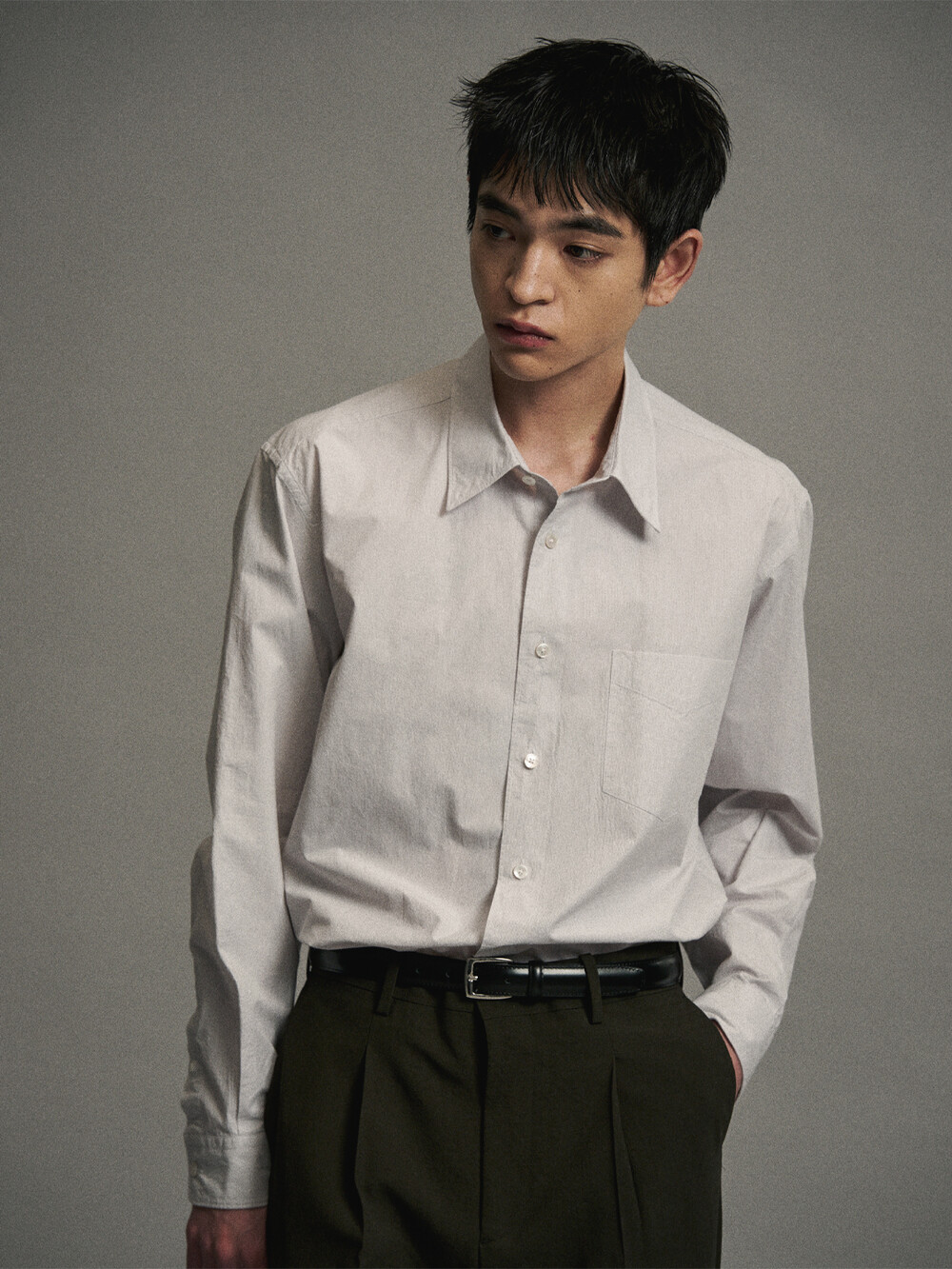 코튼 헤어라인 스트라이프 테이퍼드 셔츠 (GREIGE)