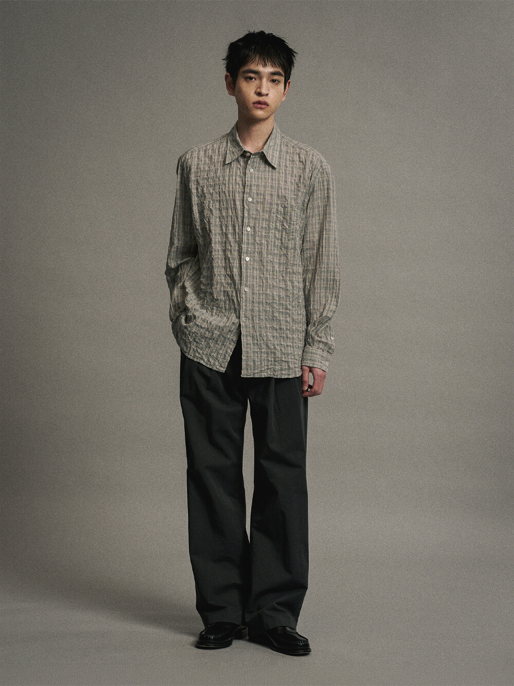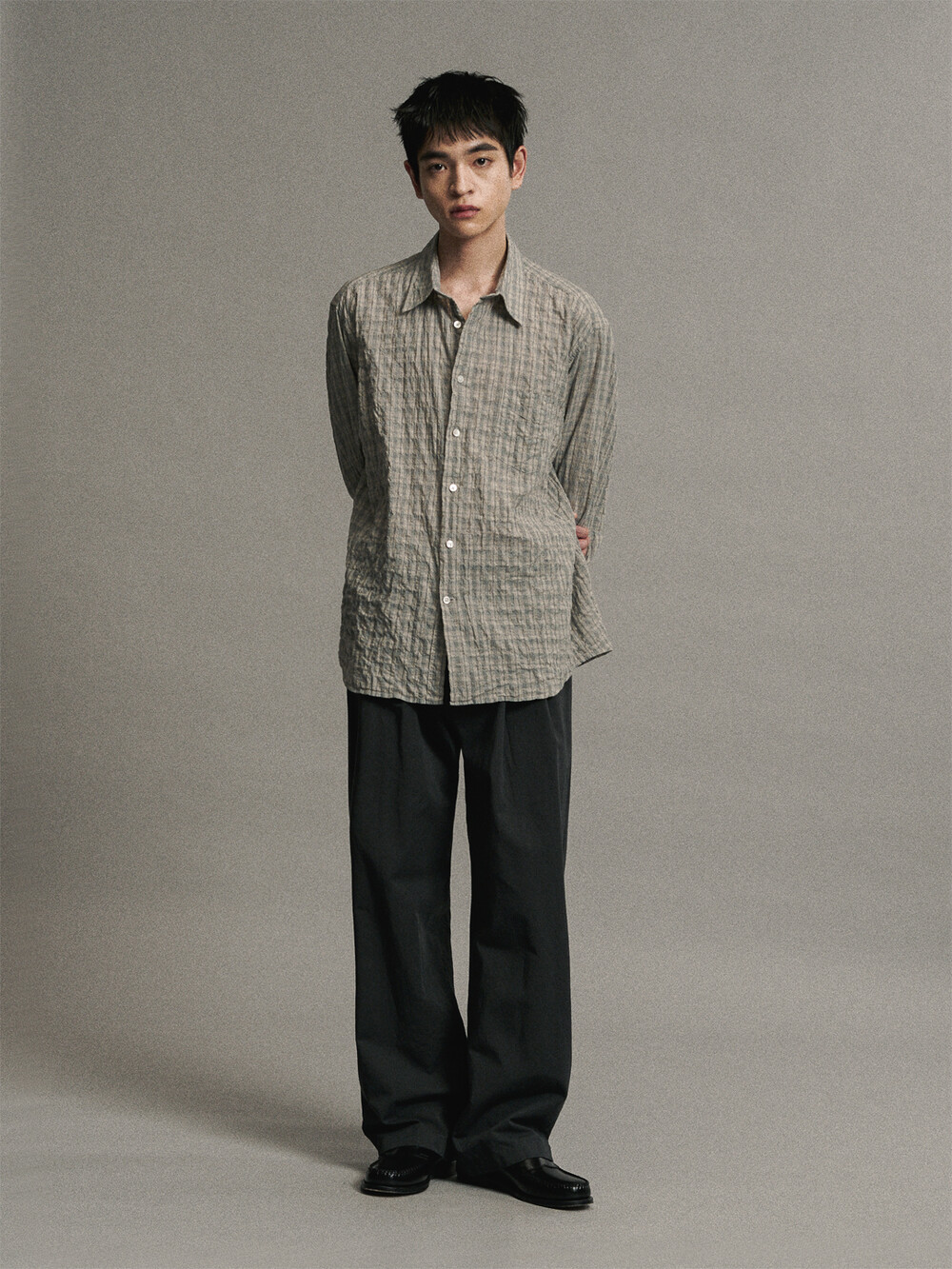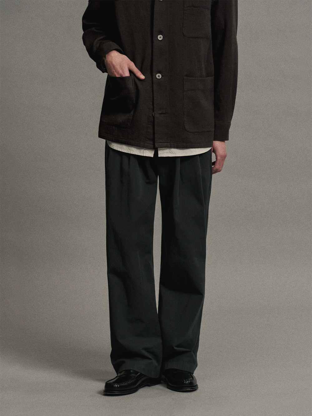 코튼 린넨 플리티드 팬츠 (INK BLACK)