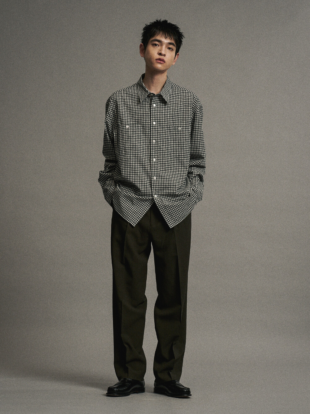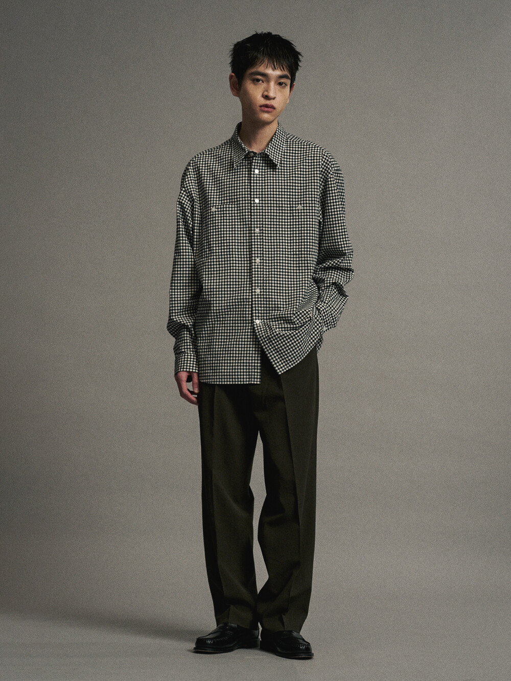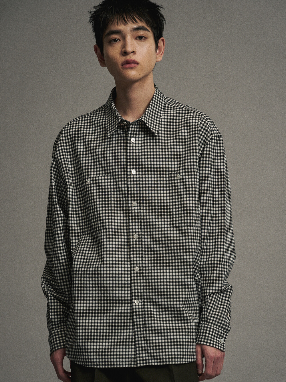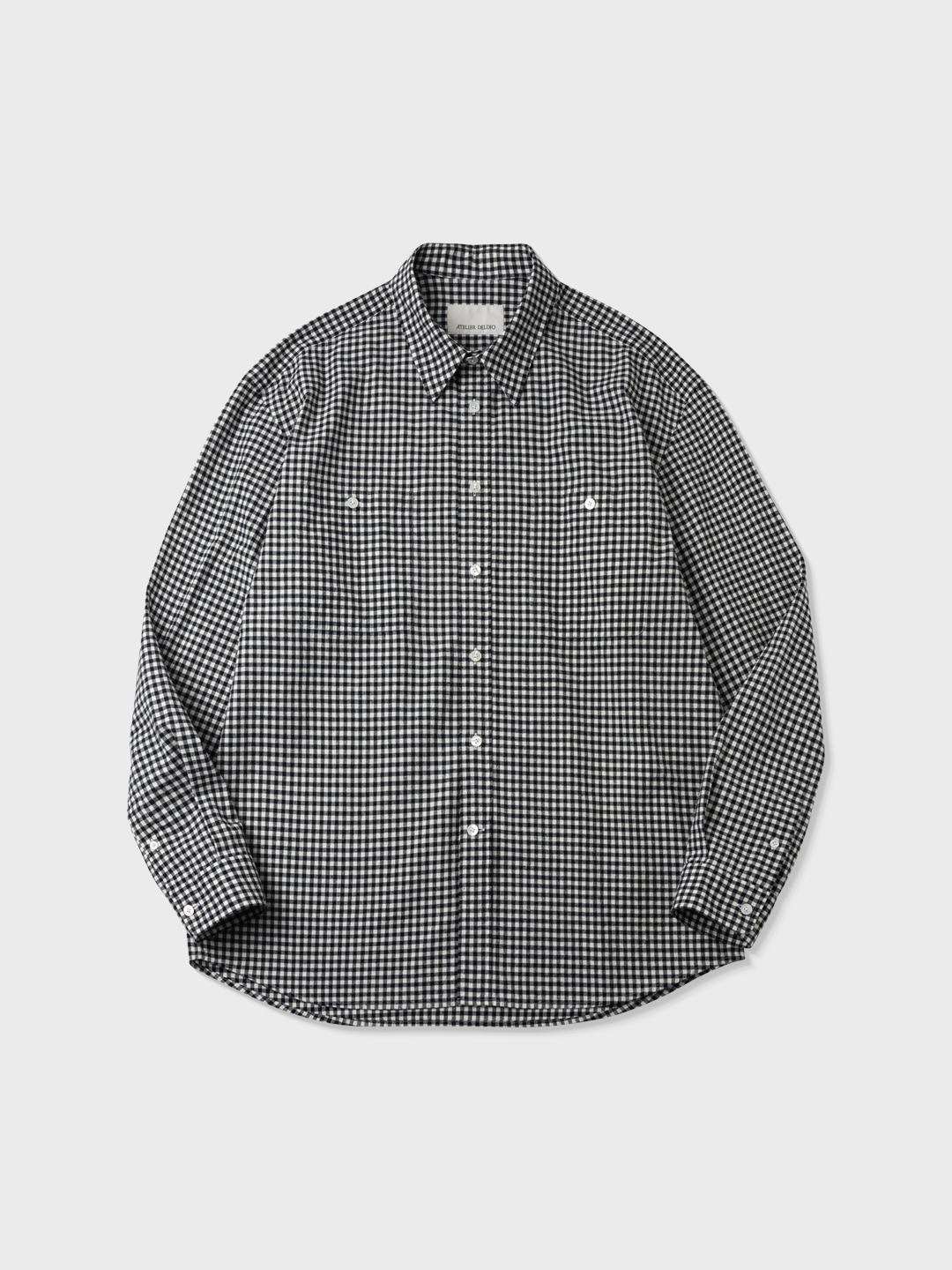 실크 노일 깅엄 더블 포켓 셔츠 (BLACK)