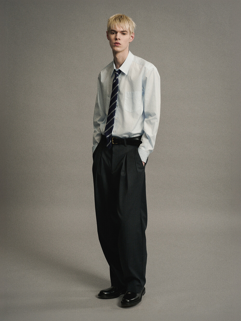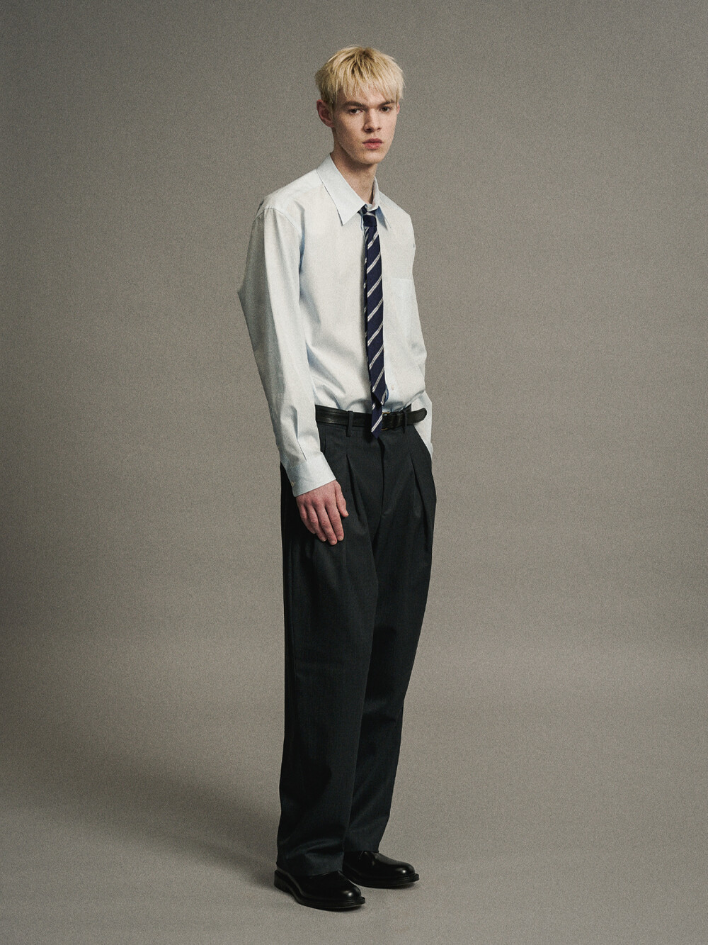 울 솔로텍스 혼방 원단으로 만든 3턱 멀티 플리티드 팬츠입니다. 빈티지 아키이브를 분석하여 맞주름 옆에 주름이 하나 더 있는 3턱 디테일의 슬랙스로 지난 시즌보다 주름 분량을 늘려 좀 더 여유로운 실루엣을 완성했습니다. 캐주얼부터 포멀 룩까지 다양한 연출이 가능합니다.
