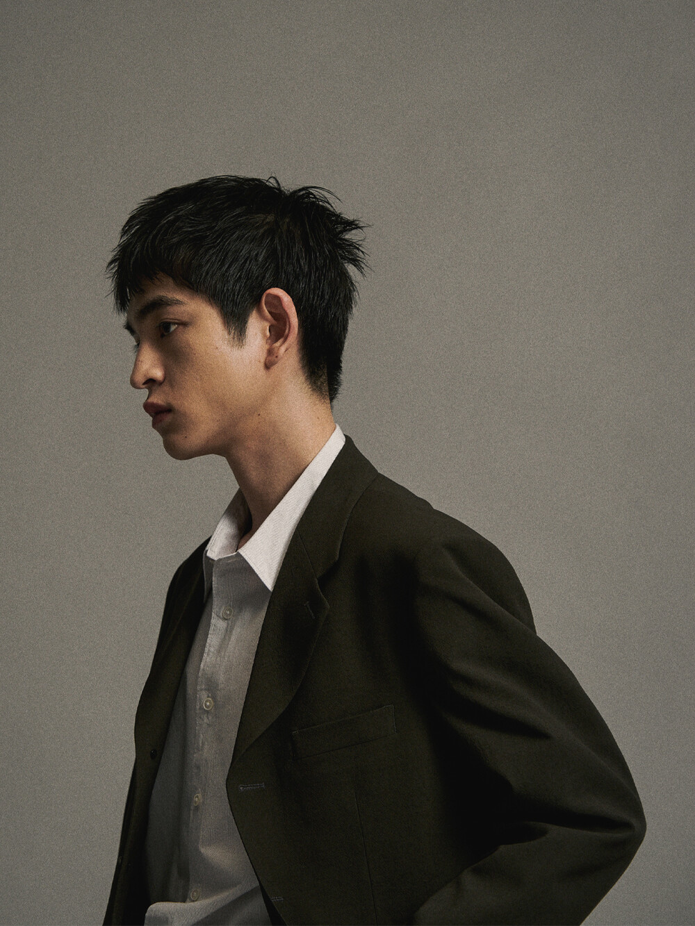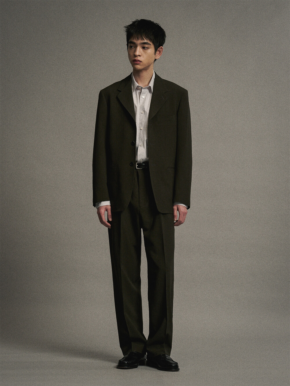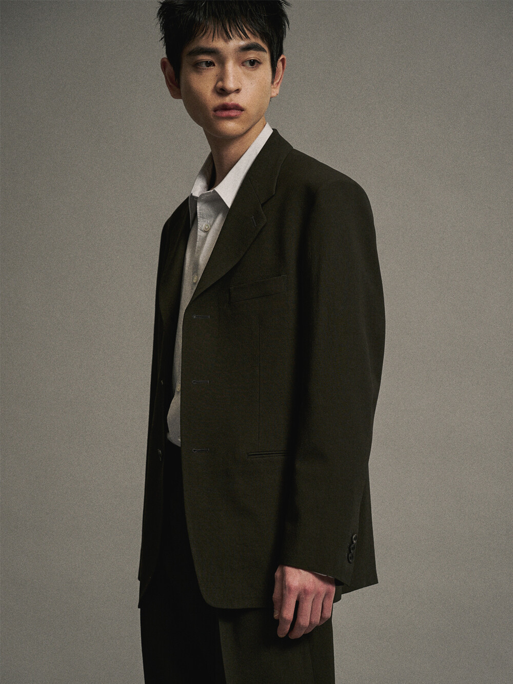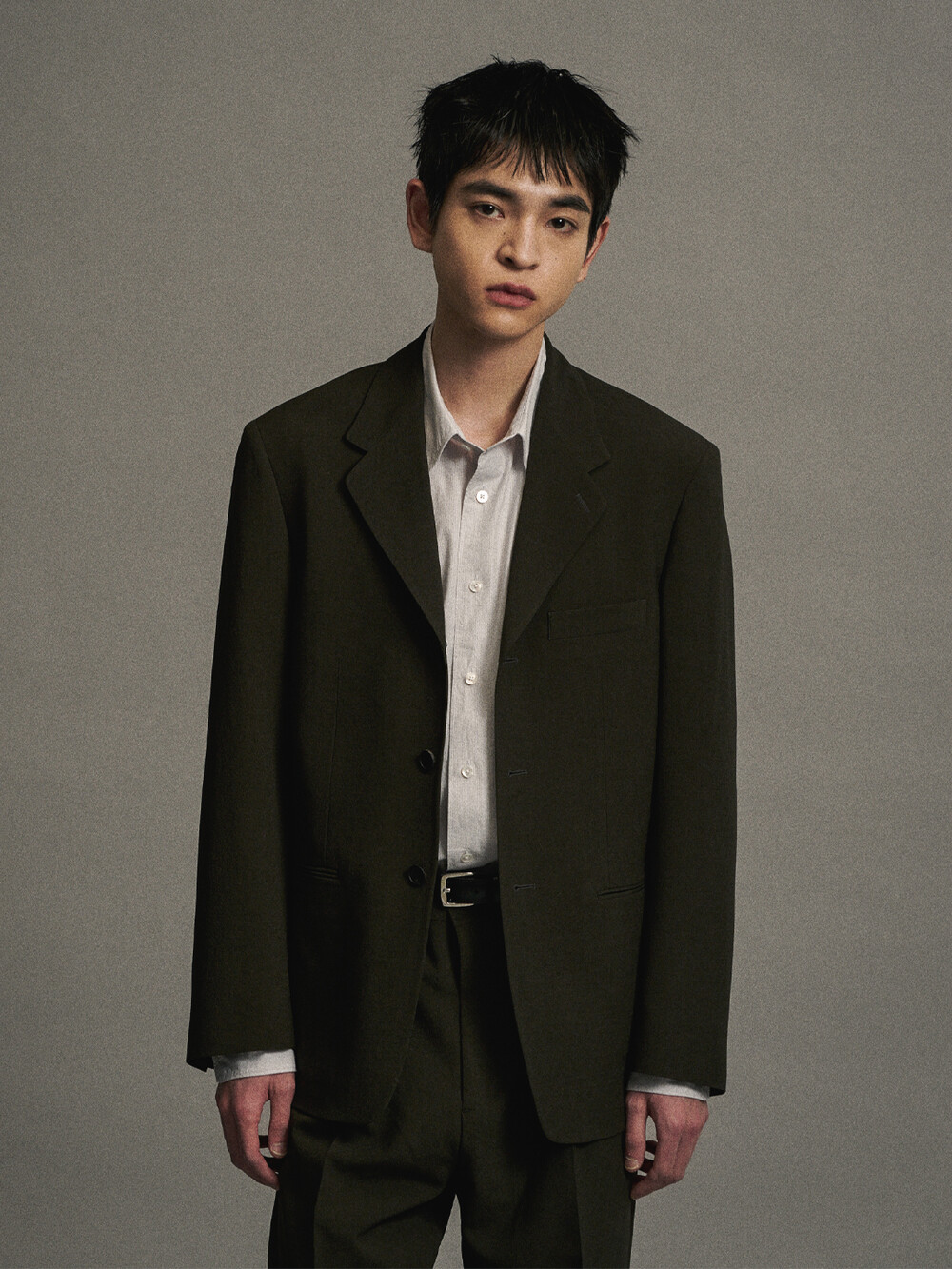 트로피컬 울 도비 테일러드 재킷 (DARK KHAKI)