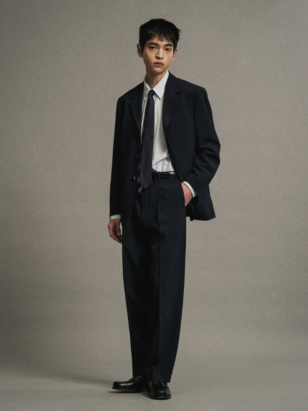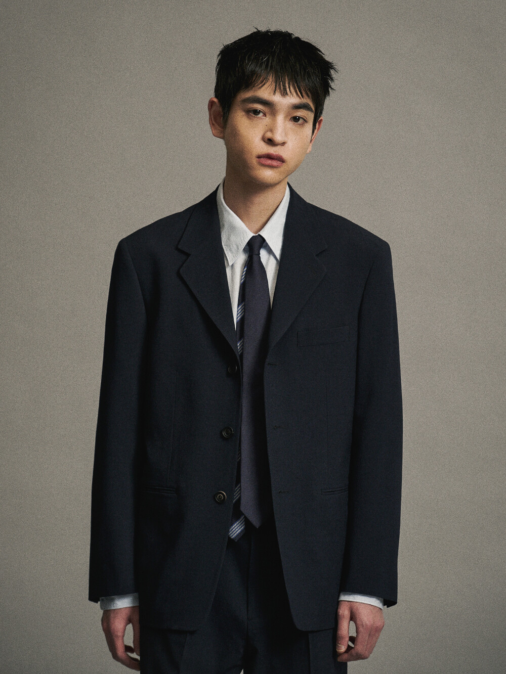 트로피컬 울 도비 테일러드 재킷 (NAVY)