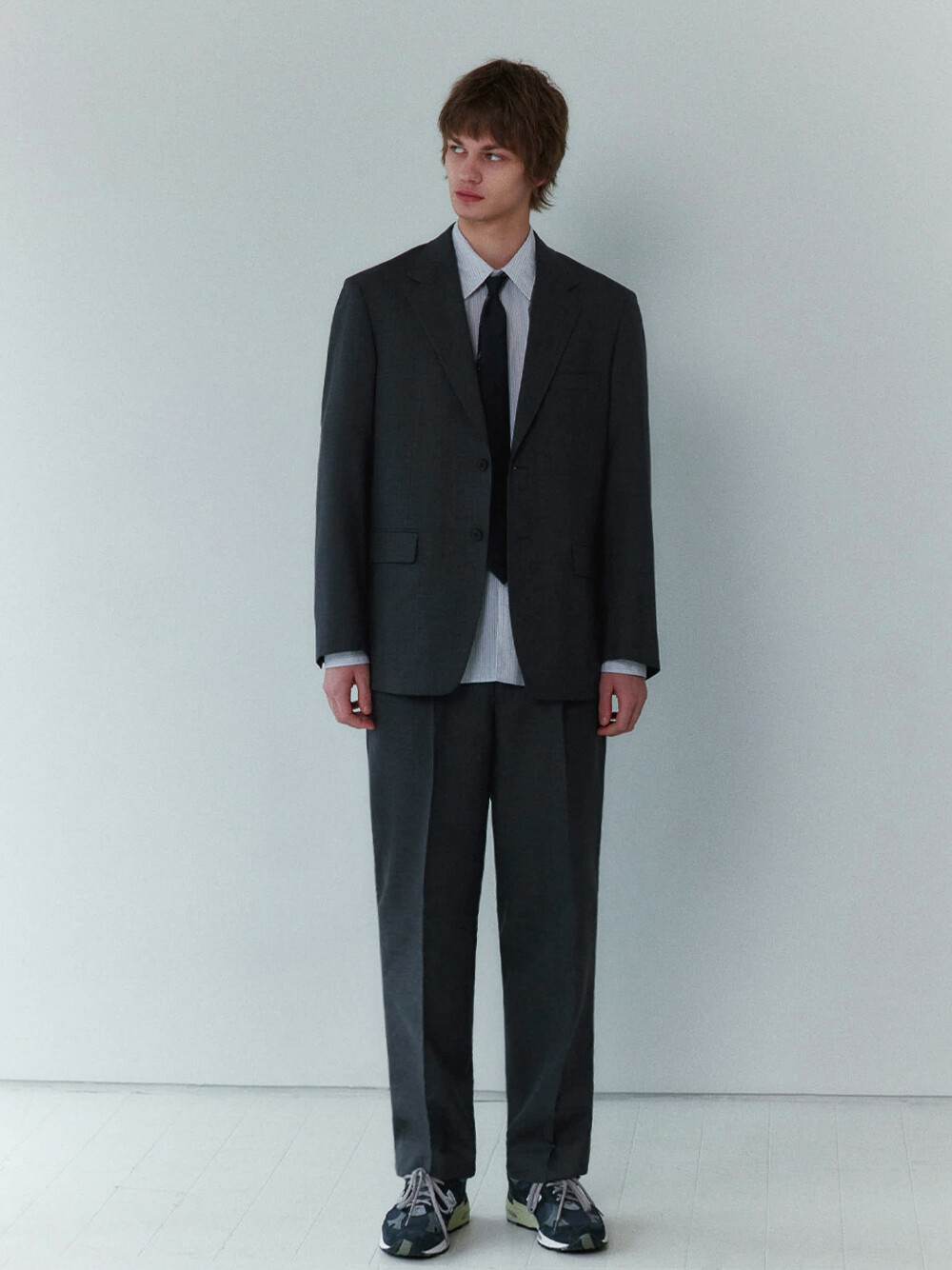 TROPICAL WOOL TAILORED PANTS (CHARCOAL GREY)