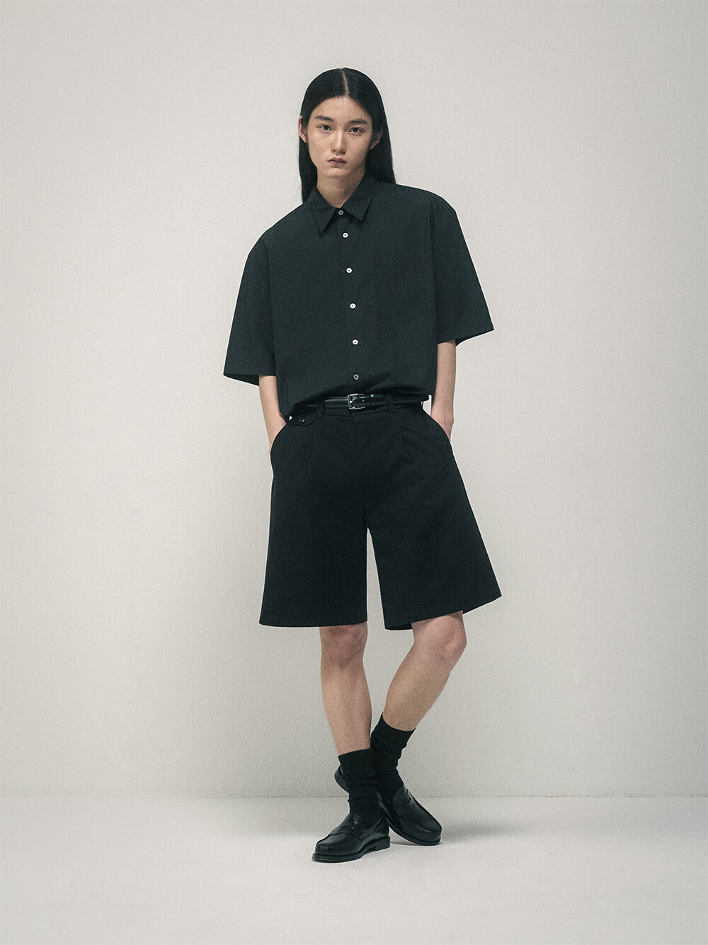 아틀리에 델디오에서 새롭게 출시하는 반소매 셔츠입니다. 지난 시즌보다 더욱 여유로운 실루엣으로 제작된 세미오버핏 셔츠입니다. 앞판에 플라켓이 없는 미니멀한 디자인에 가슴포켓이 달려있으며, 뒷판 요크를 사선으로 재단하였습니다. 슬랙스부터 청바지, 치노팬츠 등의 캐주얼한 팬츠까지 다양한 바지와 매치하실 수 있습니다.