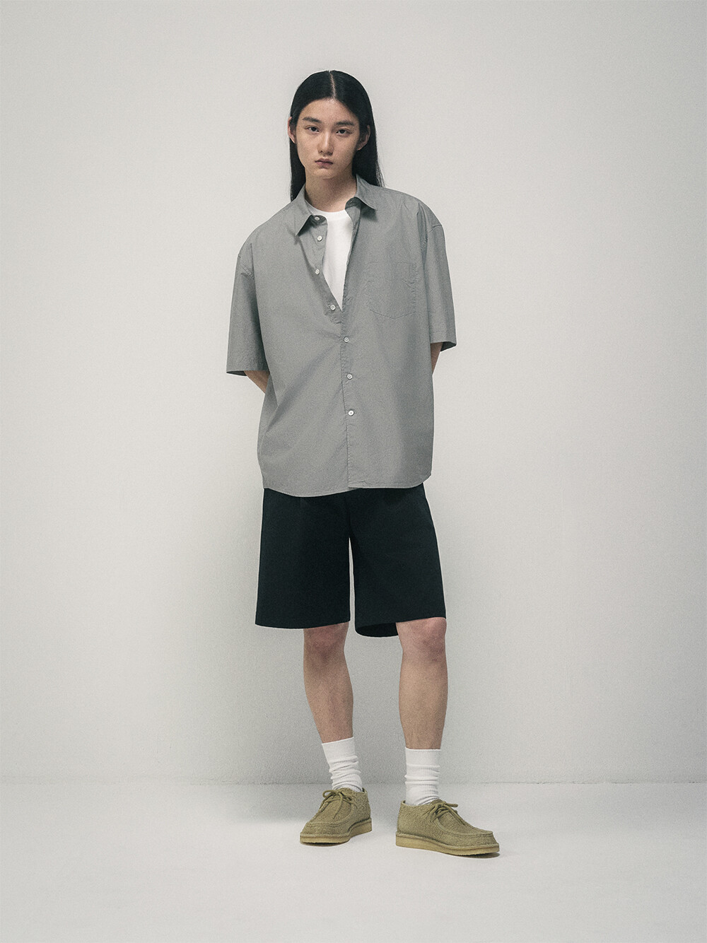 아틀리에 델디오에서 새롭게 출시하는 반소매 셔츠입니다. 지난 시즌보다 더욱 여유로운 실루엣으로 제작된 세미오버핏 셔츠입니다. 앞판에 플라켓이 없는 미니멀한 디자인에 가슴포켓이 달려있으며, 뒷판 요크를 사선으로 재단하였습니다. 슬랙스부터 청바지, 치노팬츠 등의 캐주얼한 팬츠까지 다양한 바지와 매치하실 수 있습니다.