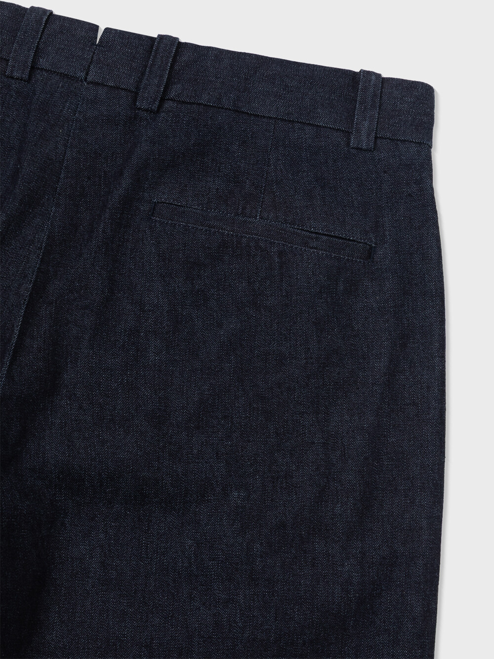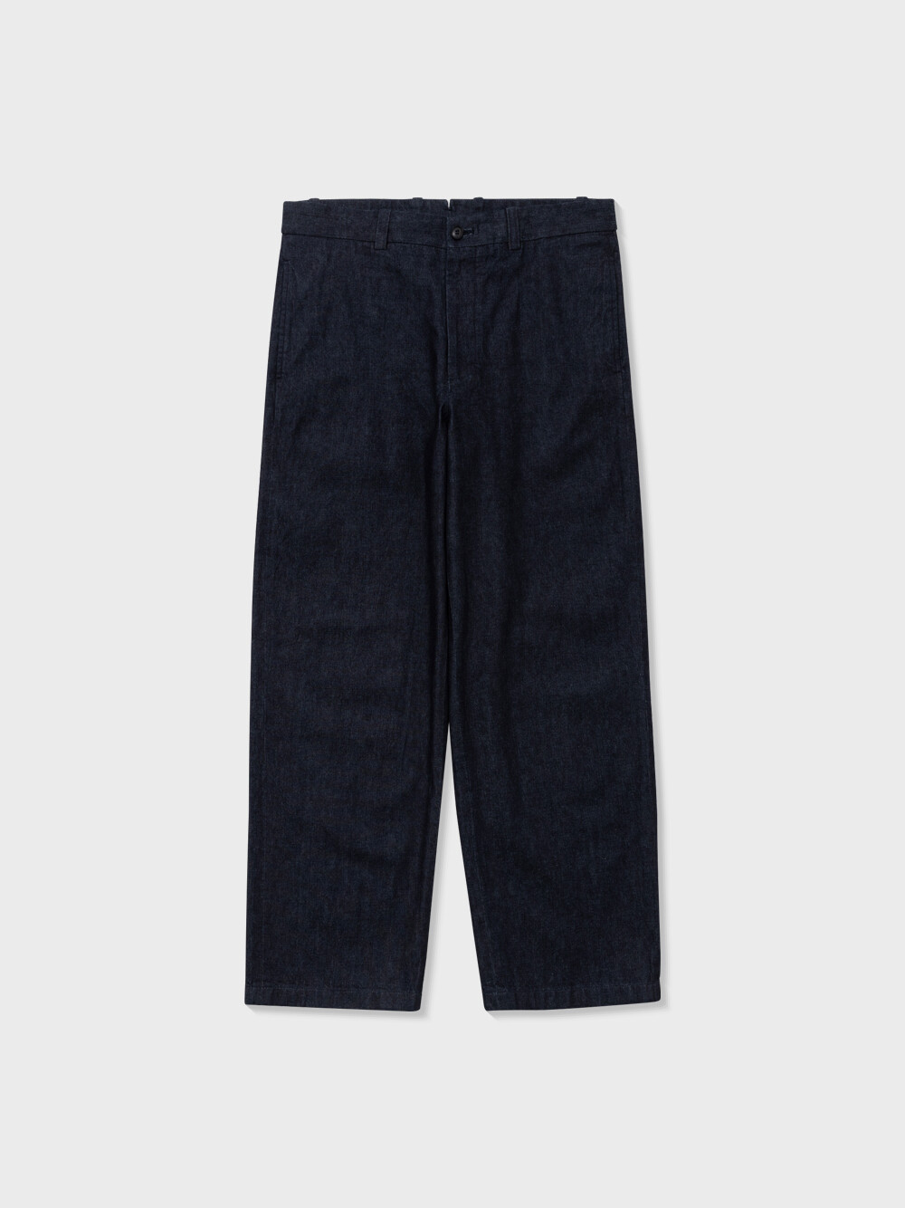 새롭게 출시되는 와이드 데님 팬츠입니다. 10온스의 데님 소재로 제작하였으며, 일반적인 청바지가 아닌 치노팬츠의 패턴을 적용하였습니다. 앞판에 주름이 없는 노턱 디자인에 적당히 와이드하게 일자로 떨어지는 실루엣의 데님 팬츠입니다. 데님 워크재킷과 셋업으로 연출하실 수 있습니다.