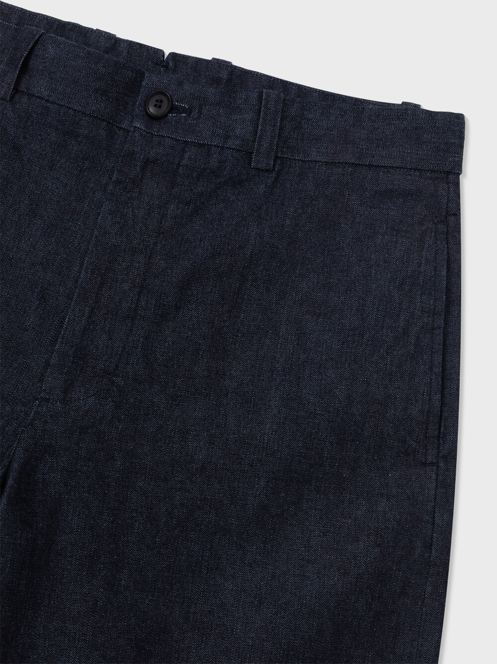 테일러드 팬츠 전문 공방에서 원맨 메이드로 만들었습니다. 팬츠 완성 후 가먼트 워싱을 통해 수축률을 최소화하고 캐주얼함을 더했습니다. 천연 소뿔단추, YKK사의 금속지퍼를 사용했습니다.