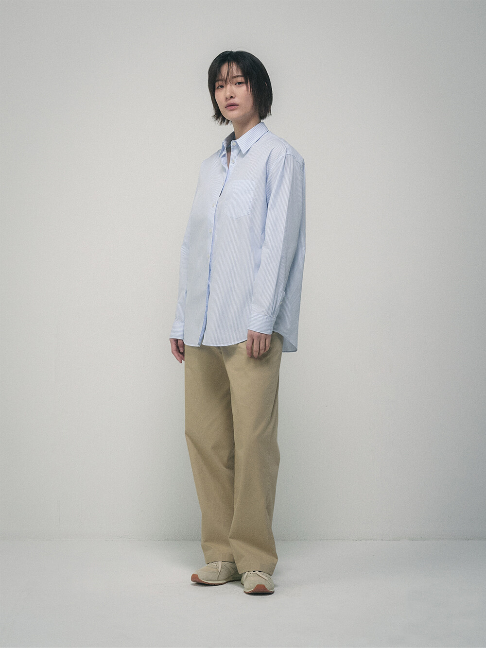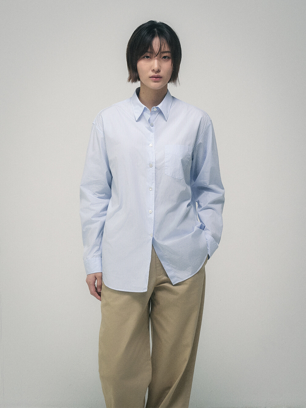 일본산 프리미엄 코튼 원단으로 만든 여성용 셔츠입니다. 해외 명품 브랜드의 셔츠에서만 볼 수 있었던 테일러링 디테일을 기반으로 디자인하였습니다. 앞판에 가슴포켓이 달려있으며, 뒷판 요크를 사선으로 재단하였습니다. 적당히 여유로운 실루엣의 컴포트핏 셔츠로 캐주얼부터 포멀룩까지 다양하게 연출할 수 있습니다.