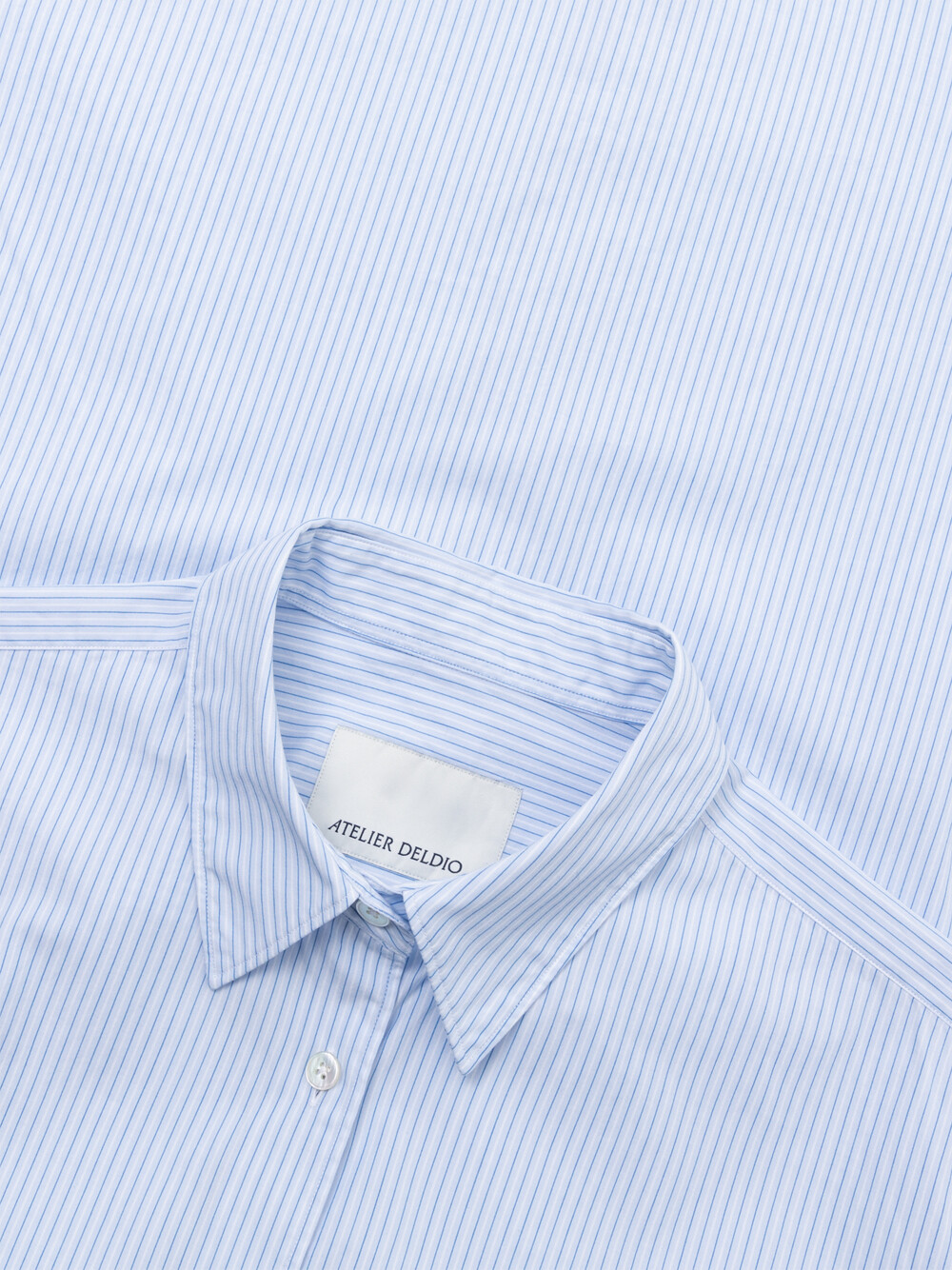 성수동에 위치한 아틀리에 델디오의 자체 공방에서 생산하였습니다. 인치당 18땀 이상의 촘촘한 봉제를 하였으며, 100% 쌈솔봉제(single needle stitching) 방식으로 제작됩니다. 내츄럴함을 살리기 위하여 카라와 소매에 비접착 심지를 사용하였습니다. 델디오의 모든 셔츠는 독일산 귀터만(Güterman) 실과 천연 자개단추를 사용합니다. 셔츠 완성 후 가먼트 워싱을 통해 수축률을 최소화하고 캐주얼함을 더했습니다.