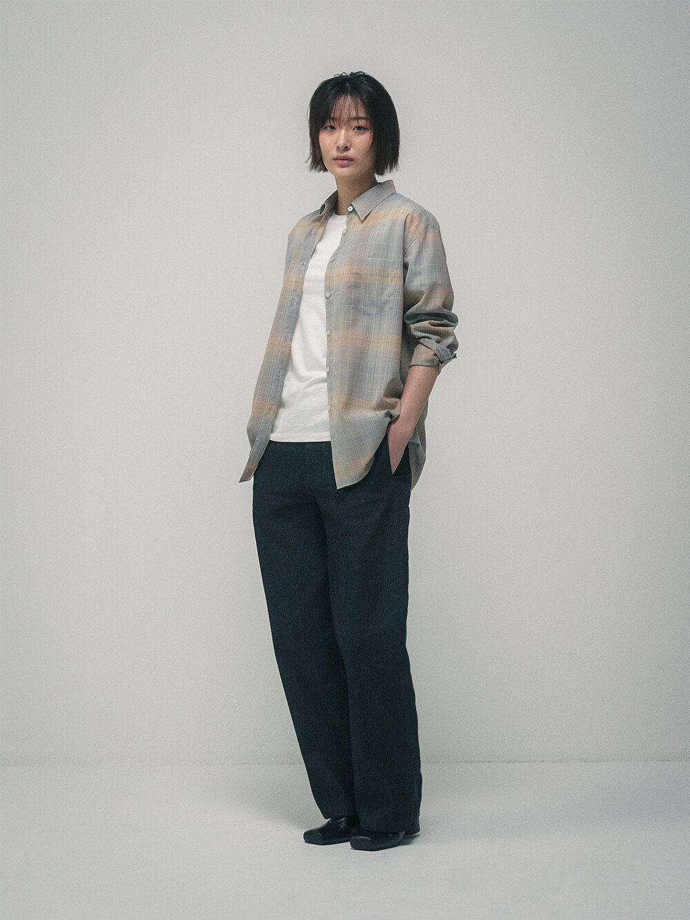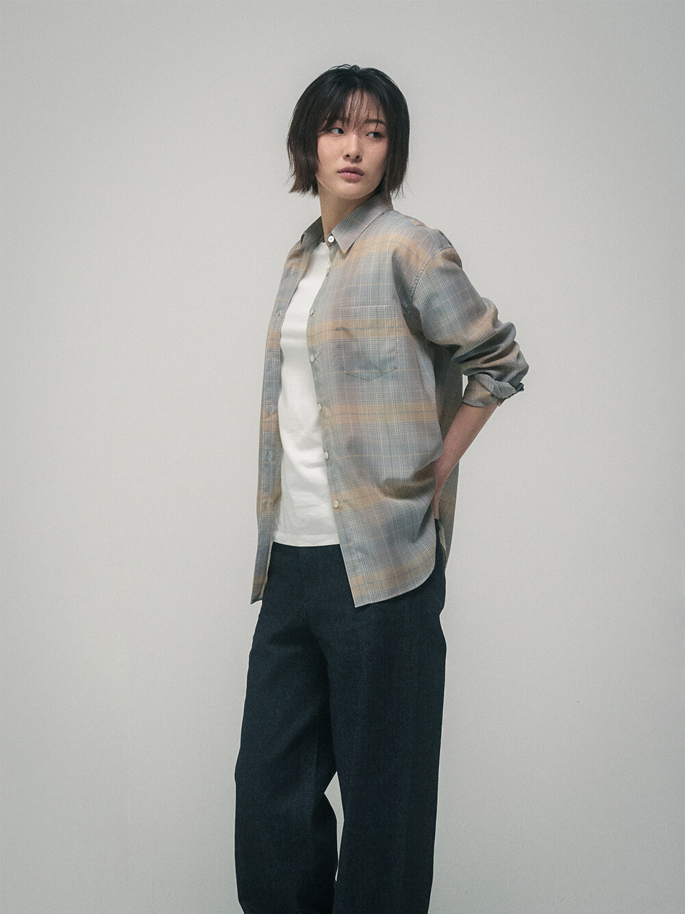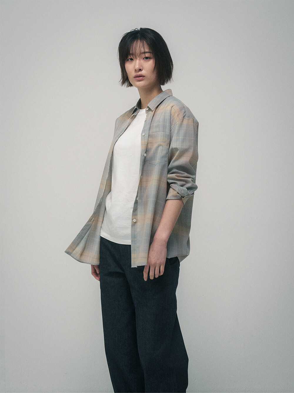 파스텔 톤의 체크 패턴 울 원단으로 만든 테이퍼드 셔츠입니다. 해외 명품 브랜드의 셔츠에서만 볼 수 있었던 테일러링 디테일을 기반으로 디자인하였습니다. 앞판에 가슴포켓이 달려있으며, 뒷판 요크를 사선으로 재단하였습니다. 적당히 여유로운 실루엣의 컴포트핏 셔츠로 캐주얼부터 포멀룩까지 다양하게 연출할 수 있습니다.