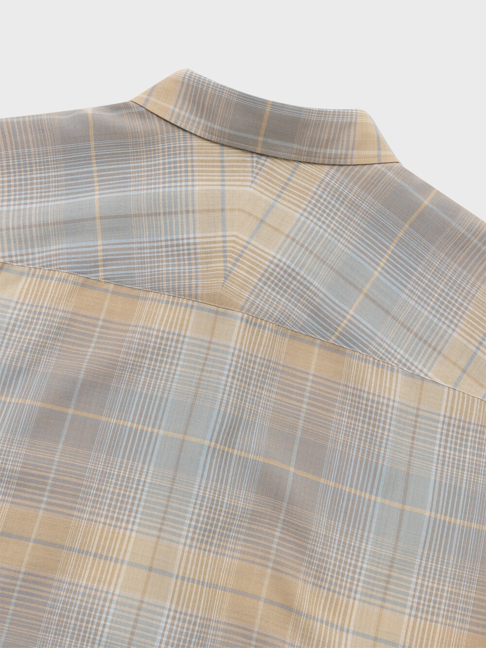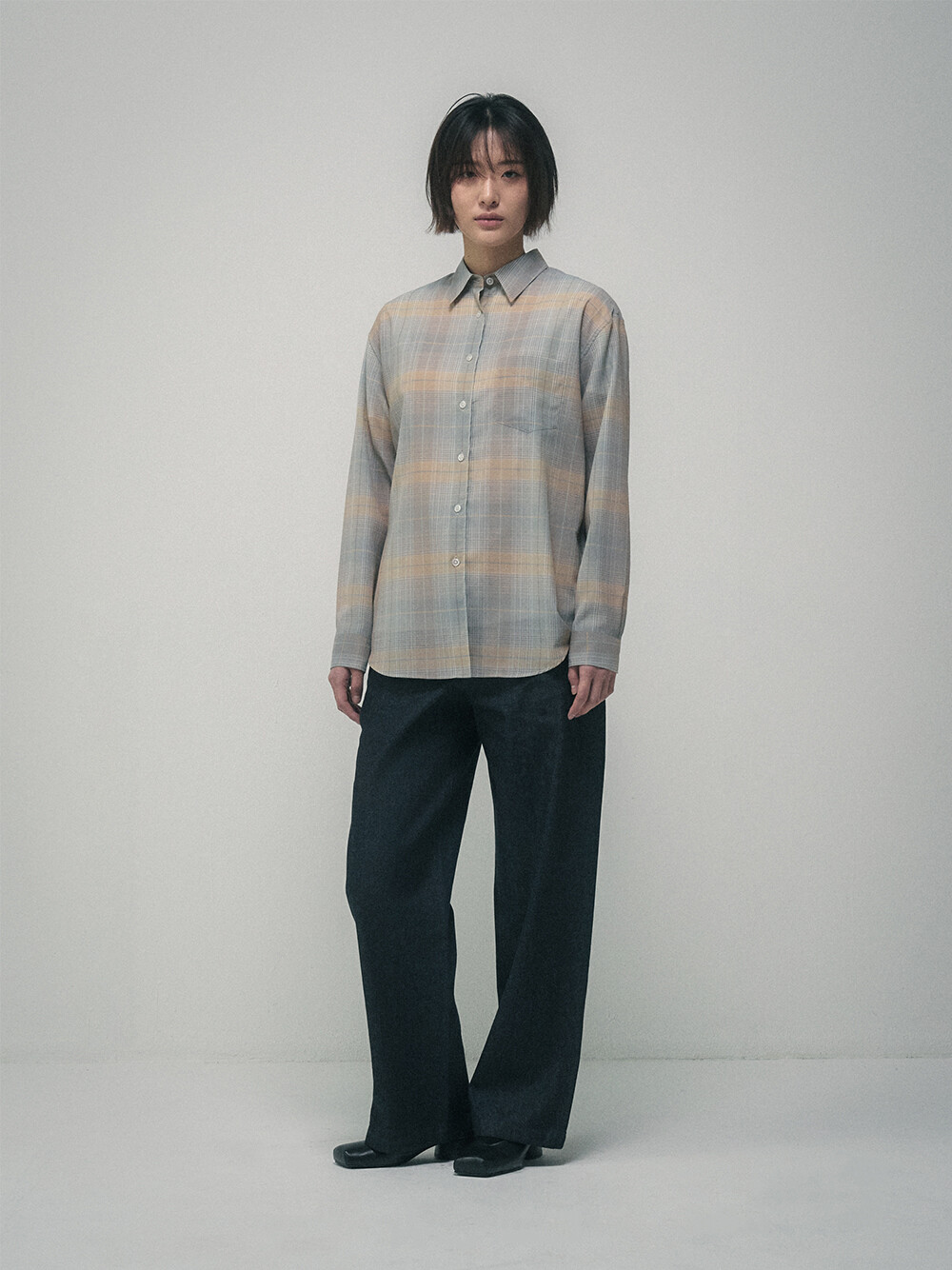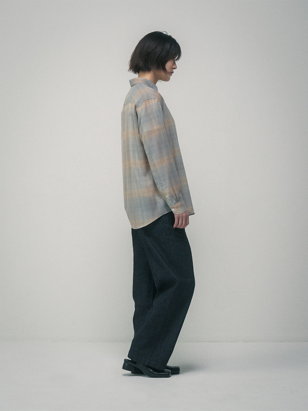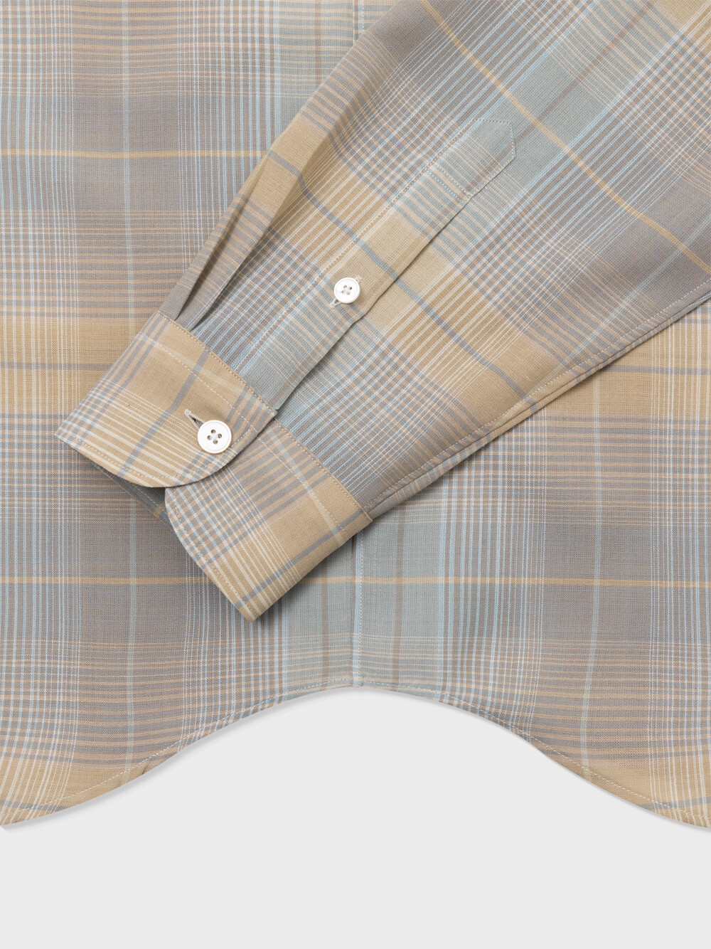 파스텔 톤의 체크 패턴 울 원단으로 만든 테이퍼드 셔츠입니다. 해외 명품 브랜드의 셔츠에서만 볼 수 있었던 테일러링 디테일을 기반으로 디자인하였습니다. 앞판에 가슴포켓이 달려있으며, 뒷판 요크를 사선으로 재단하였습니다. 적당히 여유로운 실루엣의 컴포트핏 셔츠로 캐주얼부터 포멀룩까지 다양하게 연출할 수 있습니다.