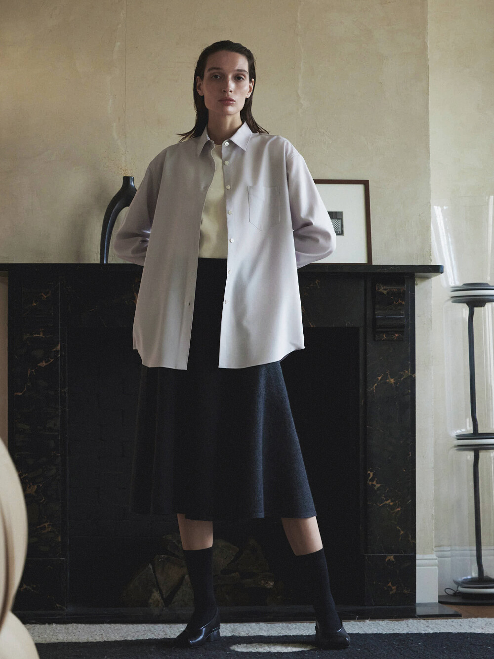호주산 프리미엄 양모인 그램피언스 울로 만든 여성용 셔츠입니다. 해외 명품 브랜드에서만 볼 수 있었던 셔츠용 울 100% 원단을 사용하였습니다. 앞판에 가슴포켓이 달려있으며, 뒷판 요크를 사선으로 재단하였습니다. 적당히 여유로운 실루엣의 컴포트핏 셔츠로 다양하게 연출할 수 있습니다. 실버와 아이보리, 그라파이트 총 3가지 컬러로 출시되었습니다.
