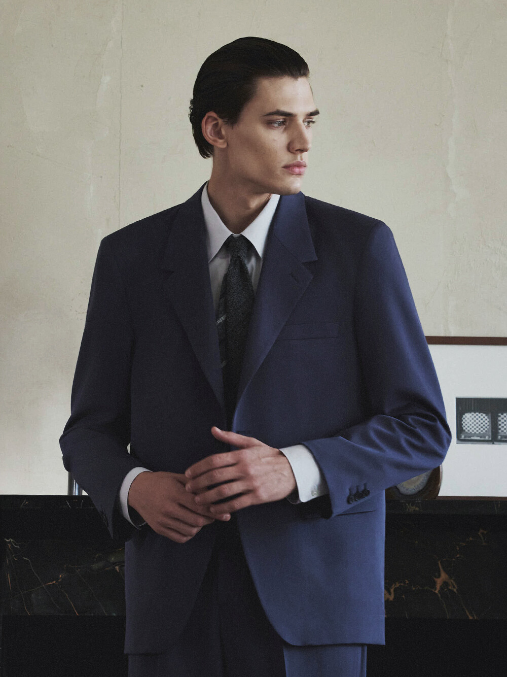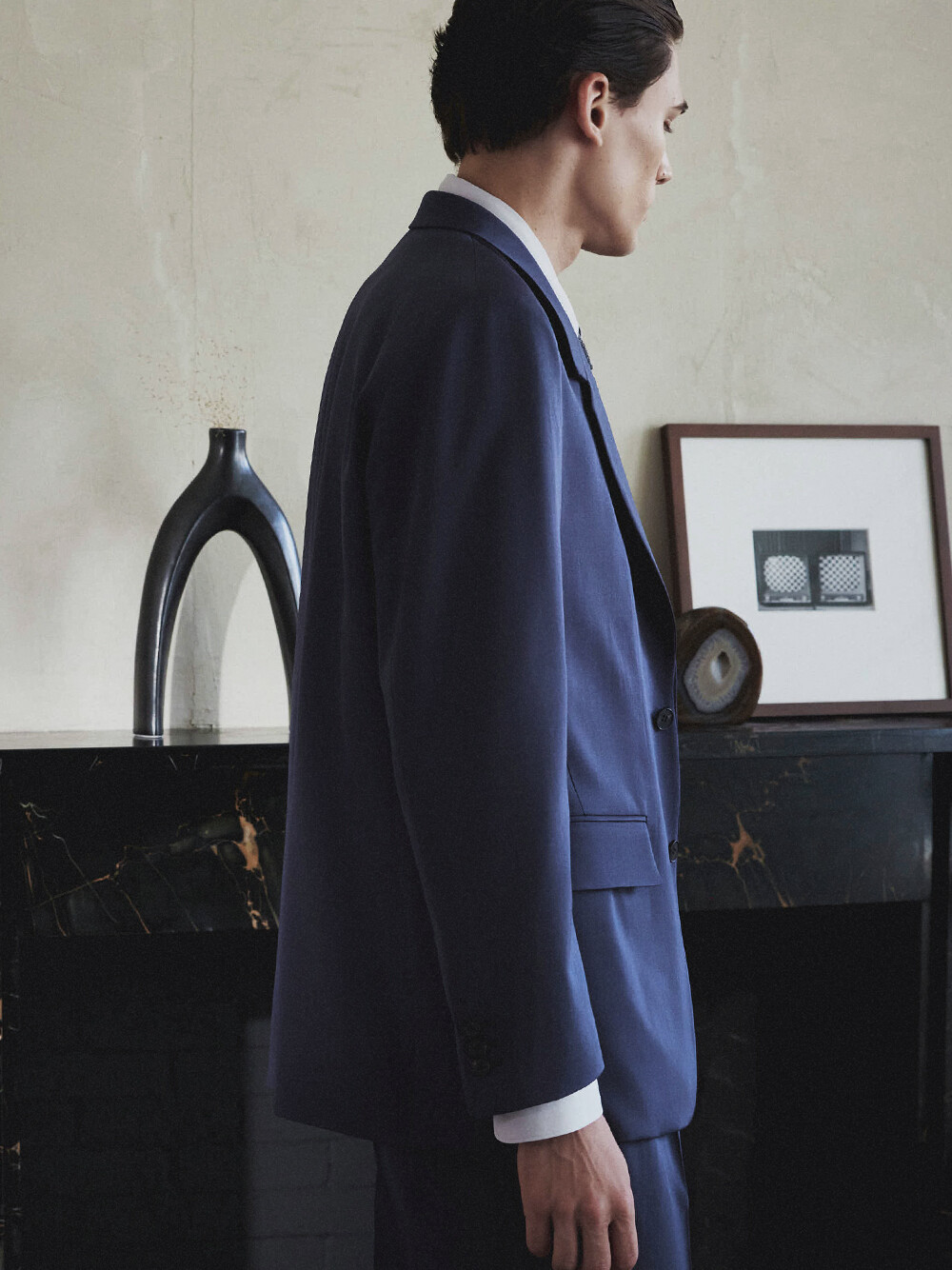 울 개버딘 원단으로 만든 투버튼 테일러드 재킷입니다. 너무 와이드하지 않은 세미오버핏의 울재킷으로 일상복 및 비즈니스 캐주얼로 활용 가능합니다. 피렌체 스타일의 통판 패턴으로 어깨에 얇은 패드가 있으며, 뒷판 중앙에 센터벤트 트임이 있습니다. 적당한 두께감으로 한여름을 제외하고 모두 착용 가능합니다. 동일한 컬러의 테일러드 팬츠와 셋업으로 연출 가능합니다.