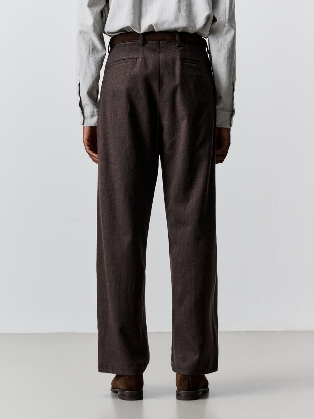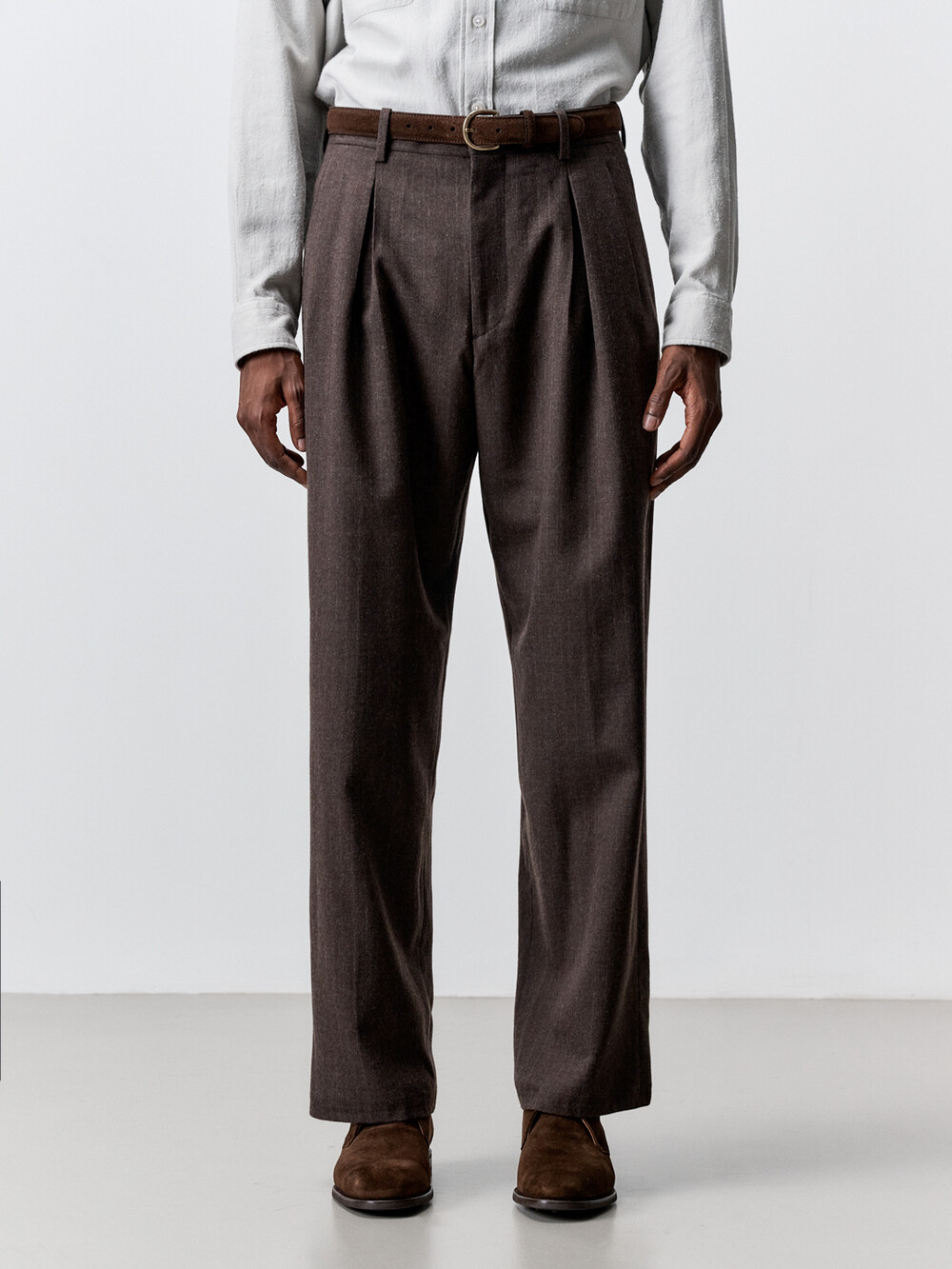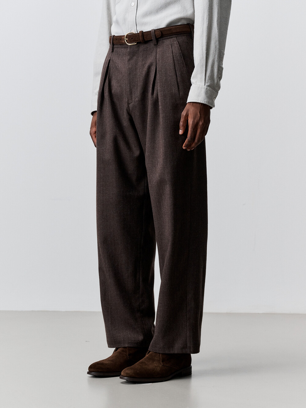 울 스트라이프 멀티 플리티드 팬츠 (BROWN)