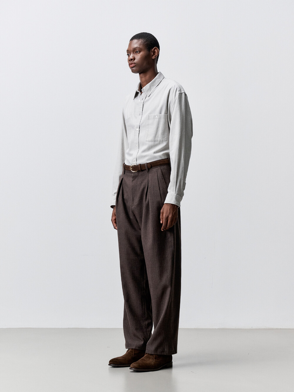2합 60수의 그램피언스 울 원단을 사용했습니다. 울 98%에 신축성 소재가 2% 블렌딩된 플란넬 원단으로 착용시 편안함을 더해주며 주름이 잘 발생하지 않습니다. 아틀리에 델디오는 특유의 촉감과 색감을 위해 프리미엄 수입소재만을 고집합니다.